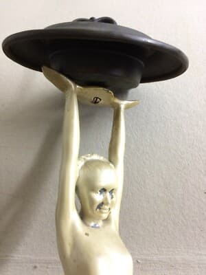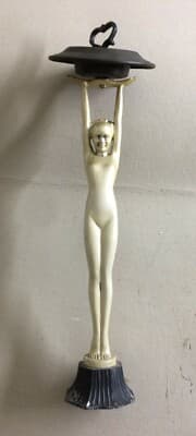 Scultura Decorativa Art Déco Con Figura Femminile Stilizzata
