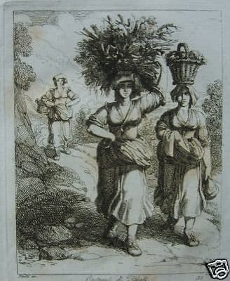 Incisione Antica Costumi Popolari Tivoli Pinelli 1800 Lazio