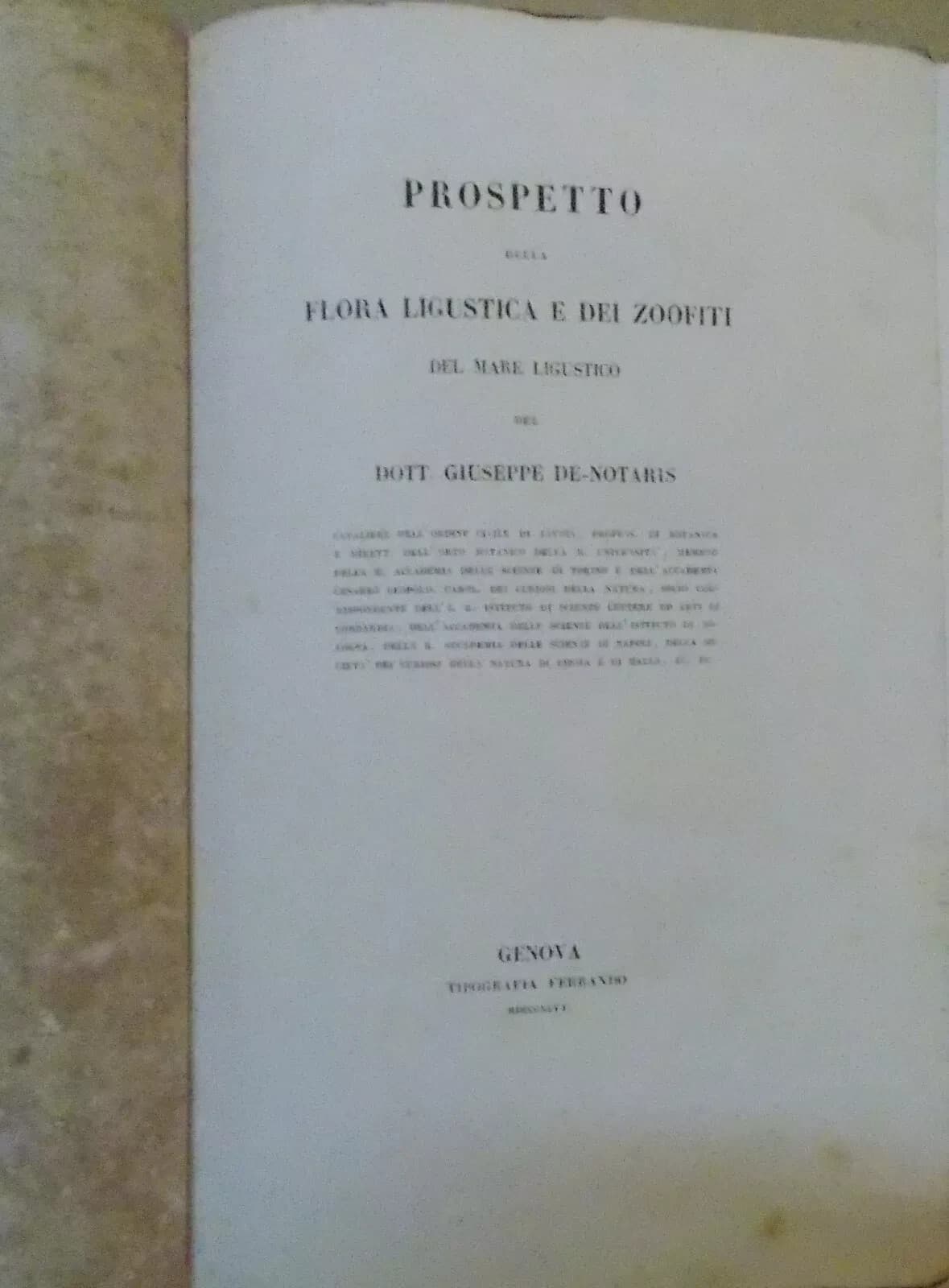 Storia Naturale, Botanica, Liguria: Flora Ligustica, Zoofiti, Alghe. De Notaris, 1846