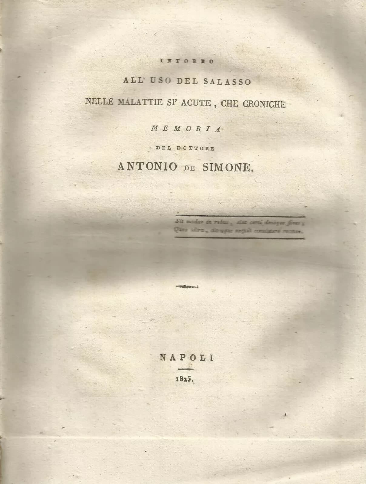 Medicina: Salasso, Sanguisughe E Mignatte. Antonio De Simone, Napoli, 1825
