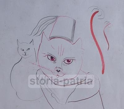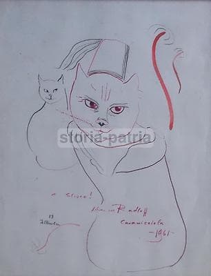 Lilian Von Radloff: Disegno Originale A Colori Con Gatti, Ischia, 1961