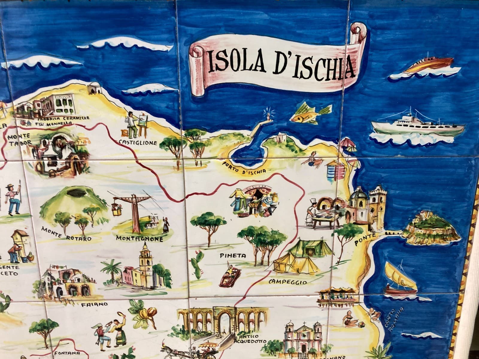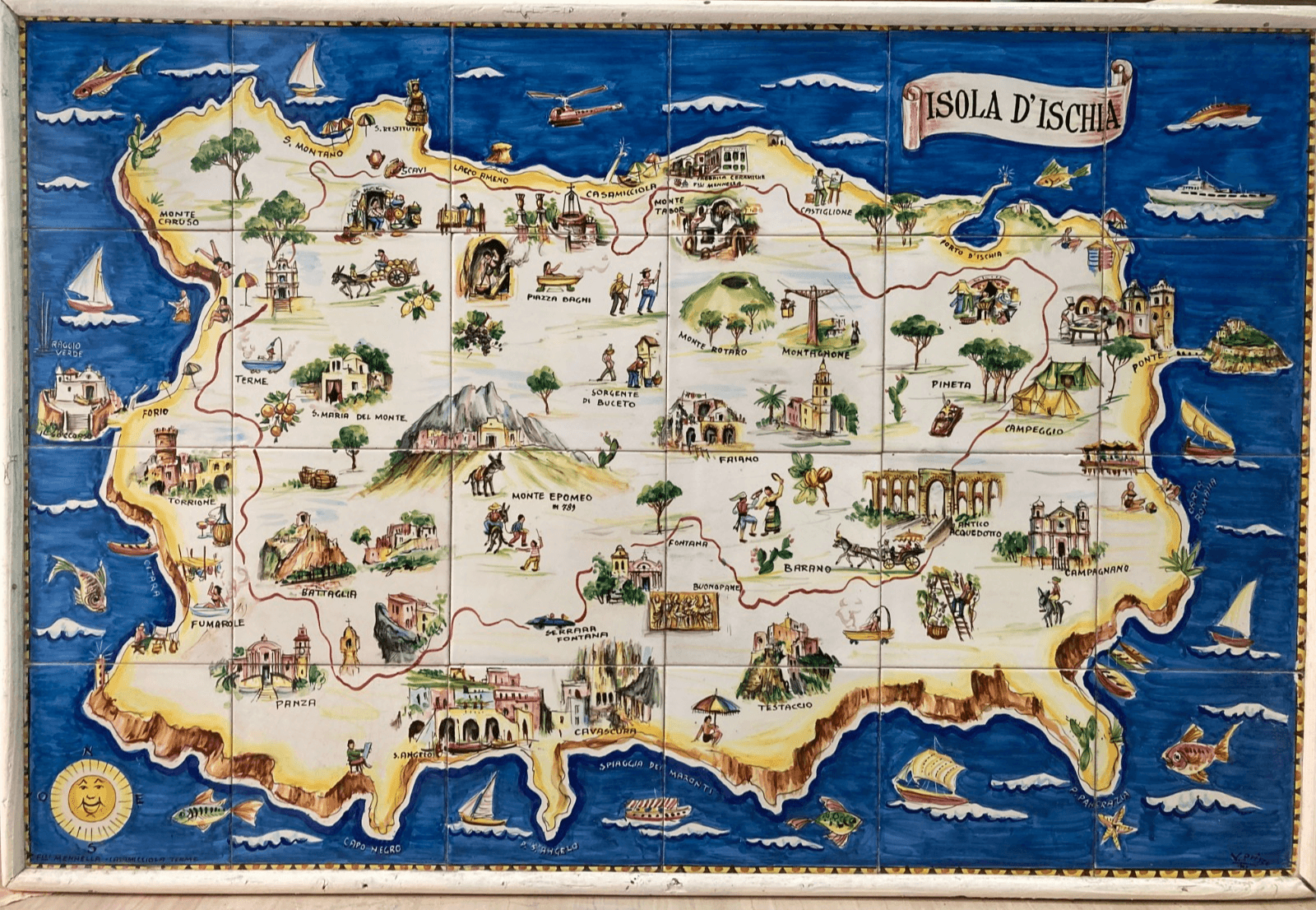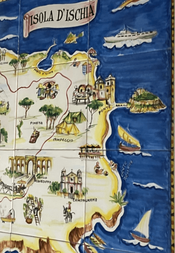 Isola d'Ischia. Grande Pannello Cartografico In Ceramica Dipinta A Mano