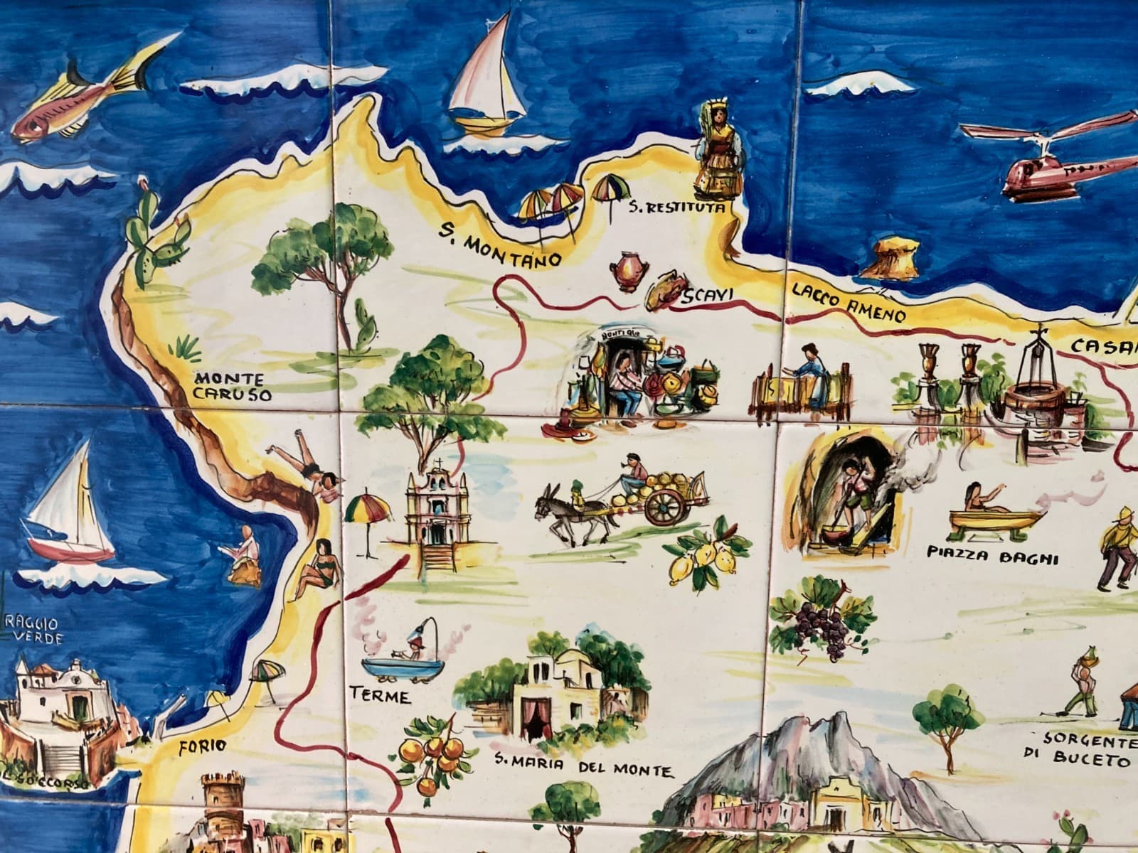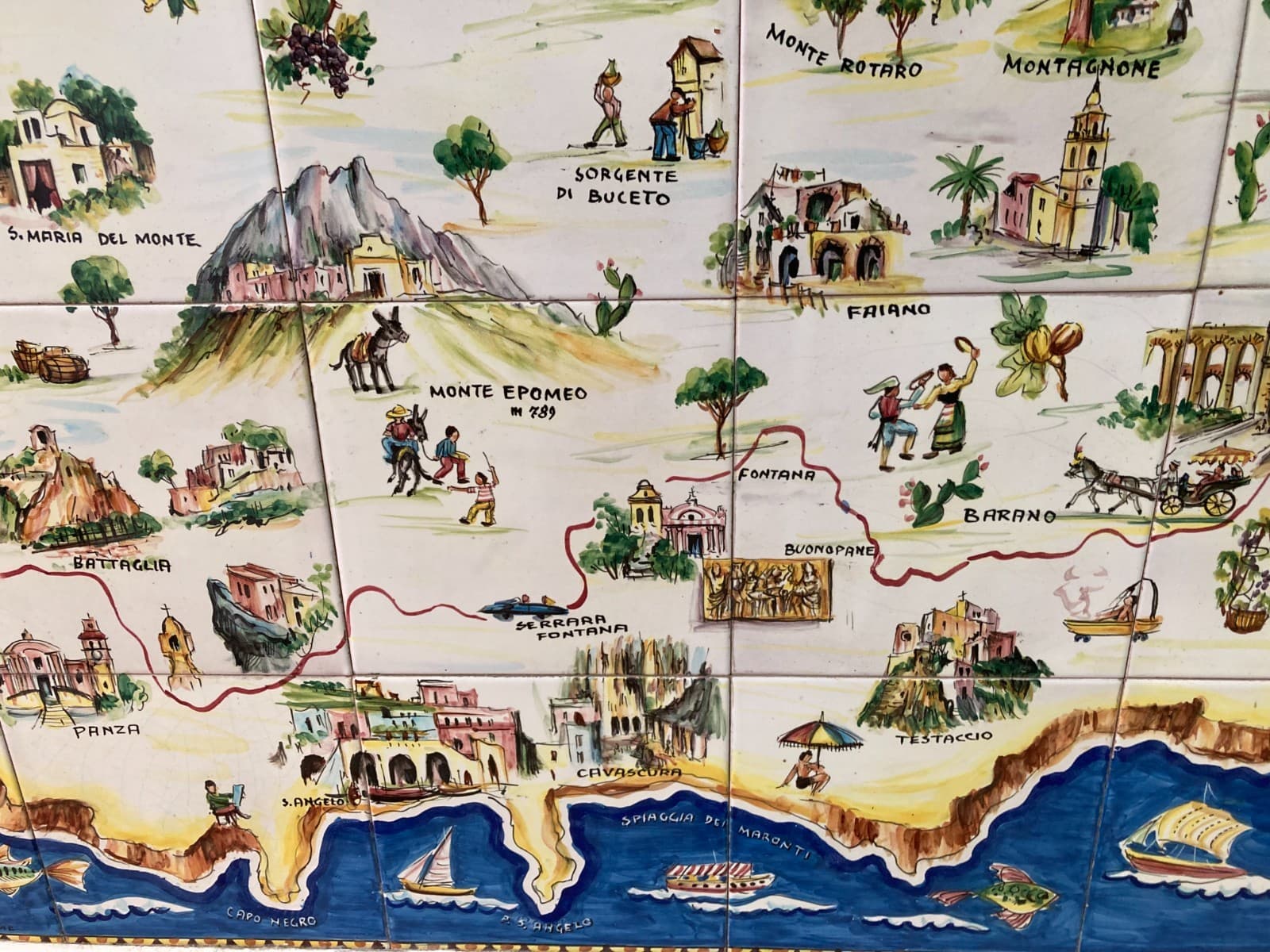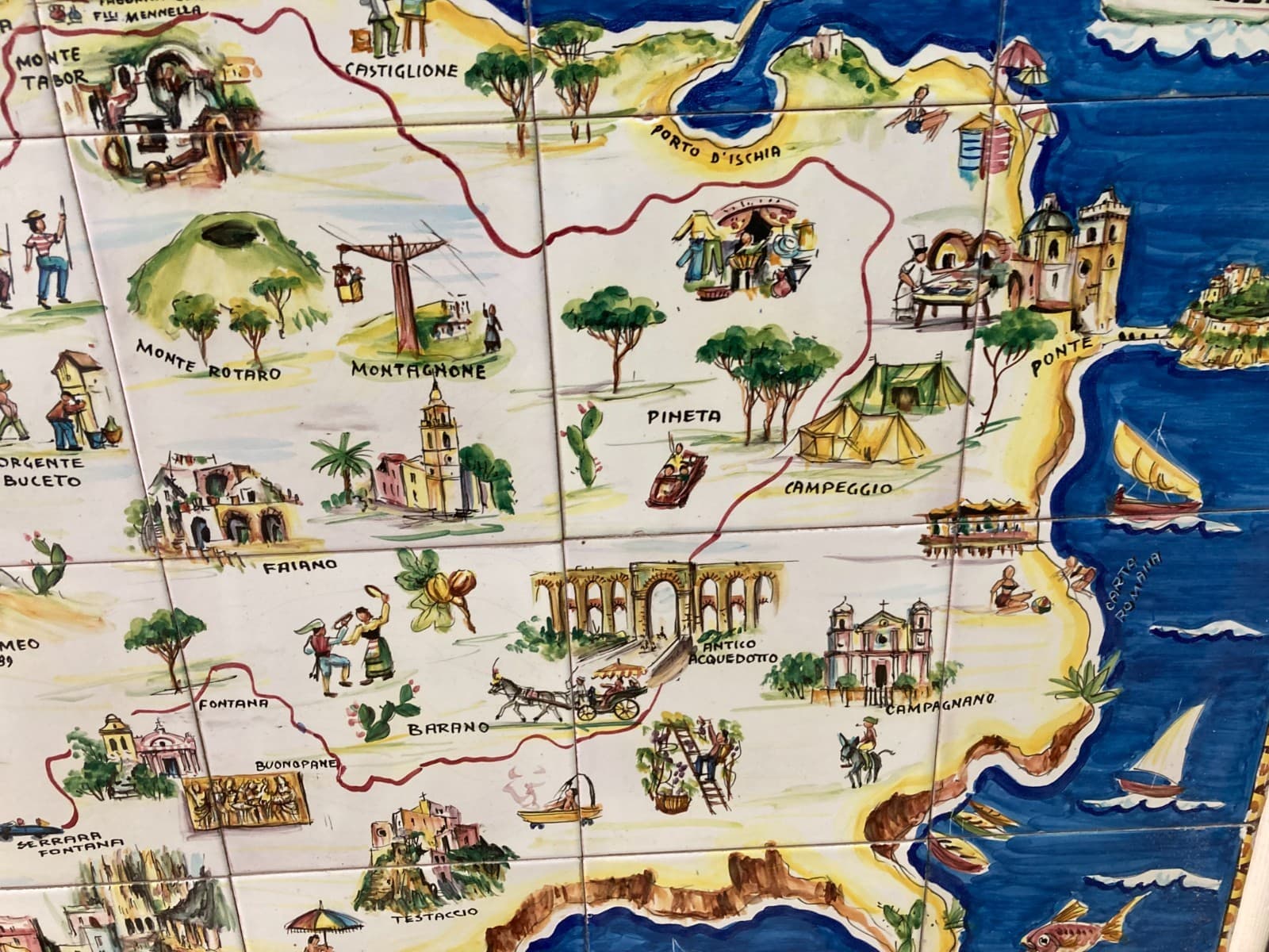 Isola d'Ischia. Grande Pannello Cartografico In Ceramica Dipinta A Mano
