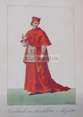 Antica Stampa Popolare: Ritratto Di Cardinale In Mantelletta E Mozzetta Ferrari