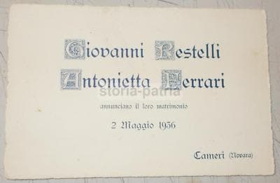 Invito Per Nozze Restelli Ferrari, Cameri, 1936
