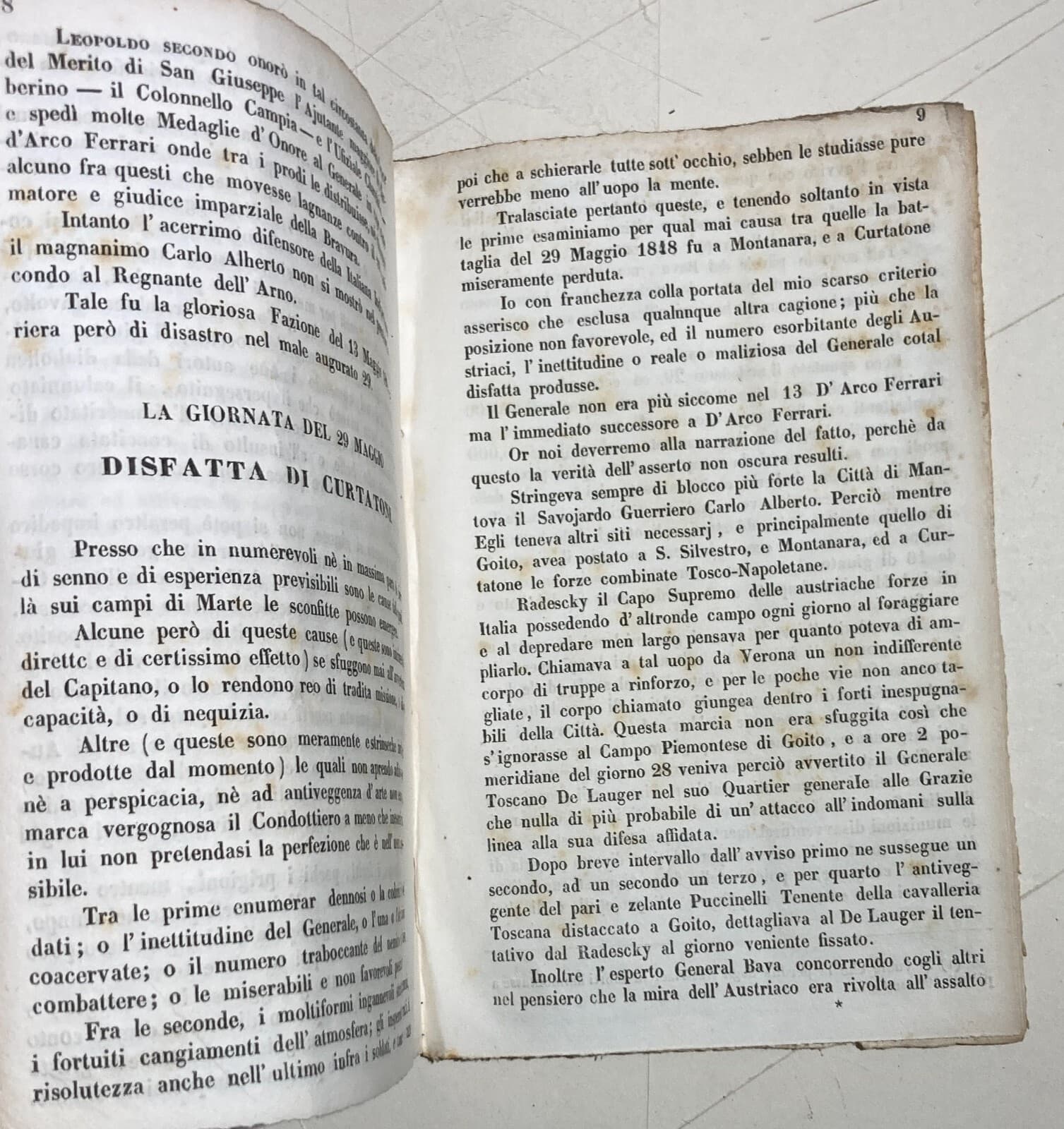 Risorgimento, Militaria, Conflitti Bellici 1848: Toscana, Piemonte, Napoli Federigo Brandini