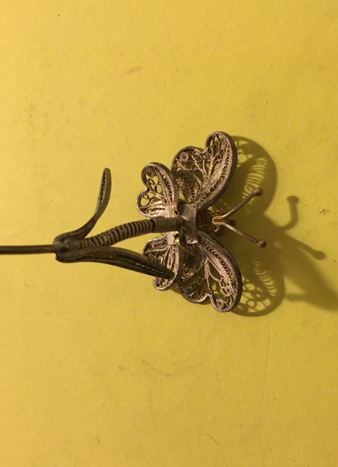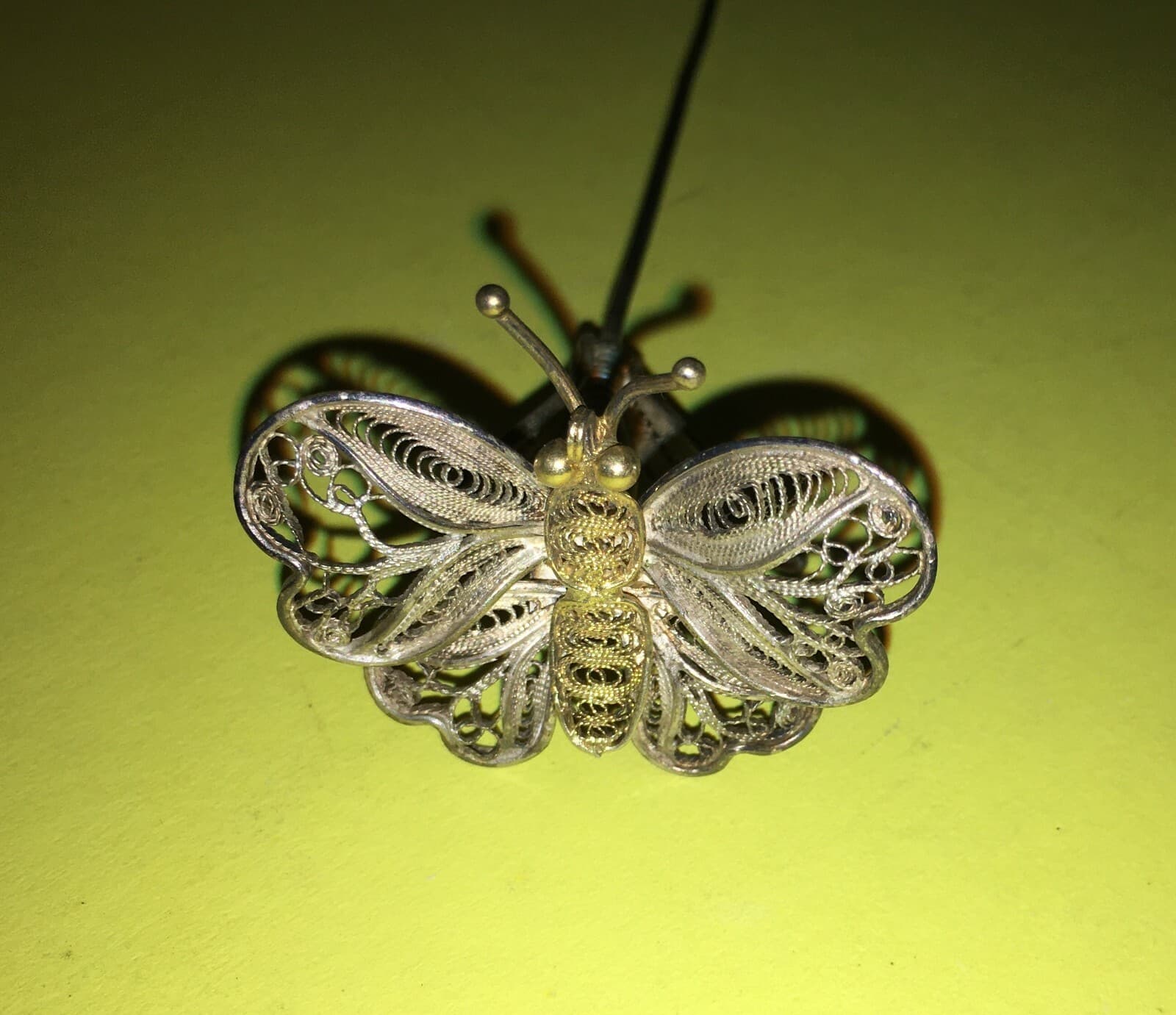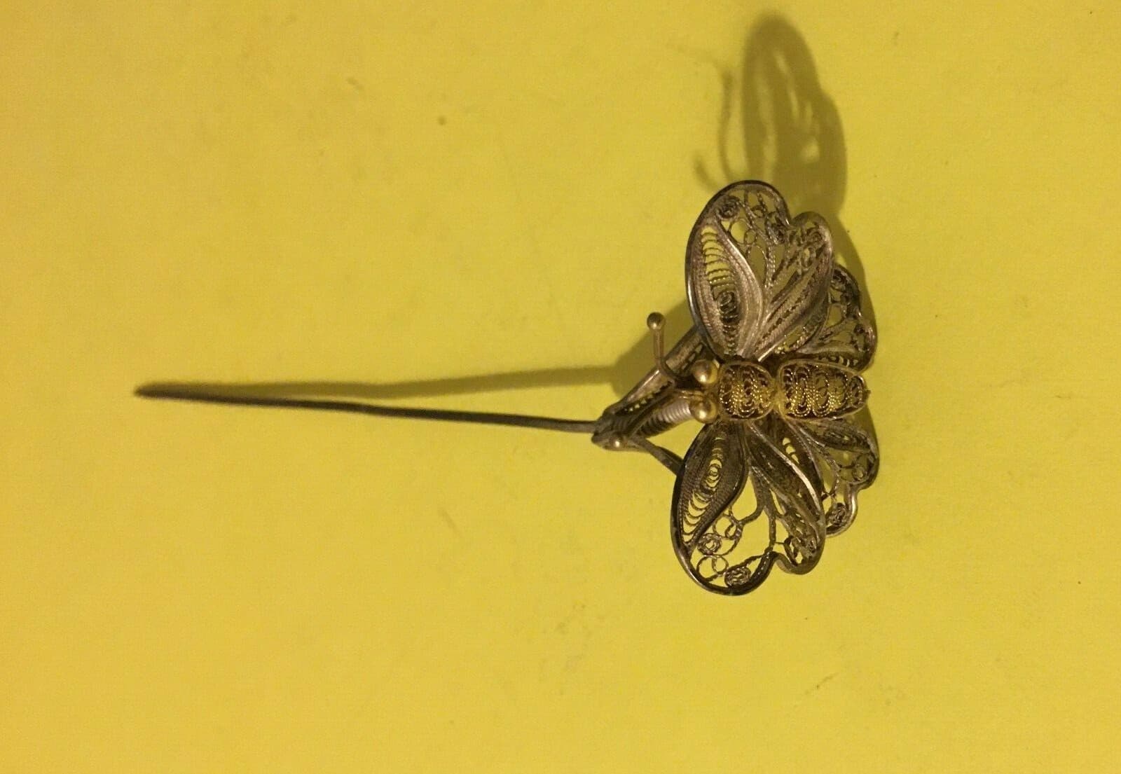 Artistico Spillone Da Collezione Per Acconciature O Cappelli: Farfalla In Filigrana