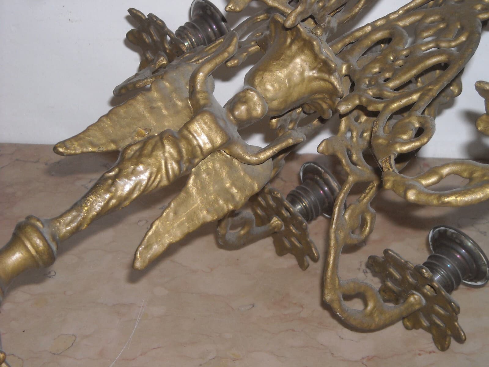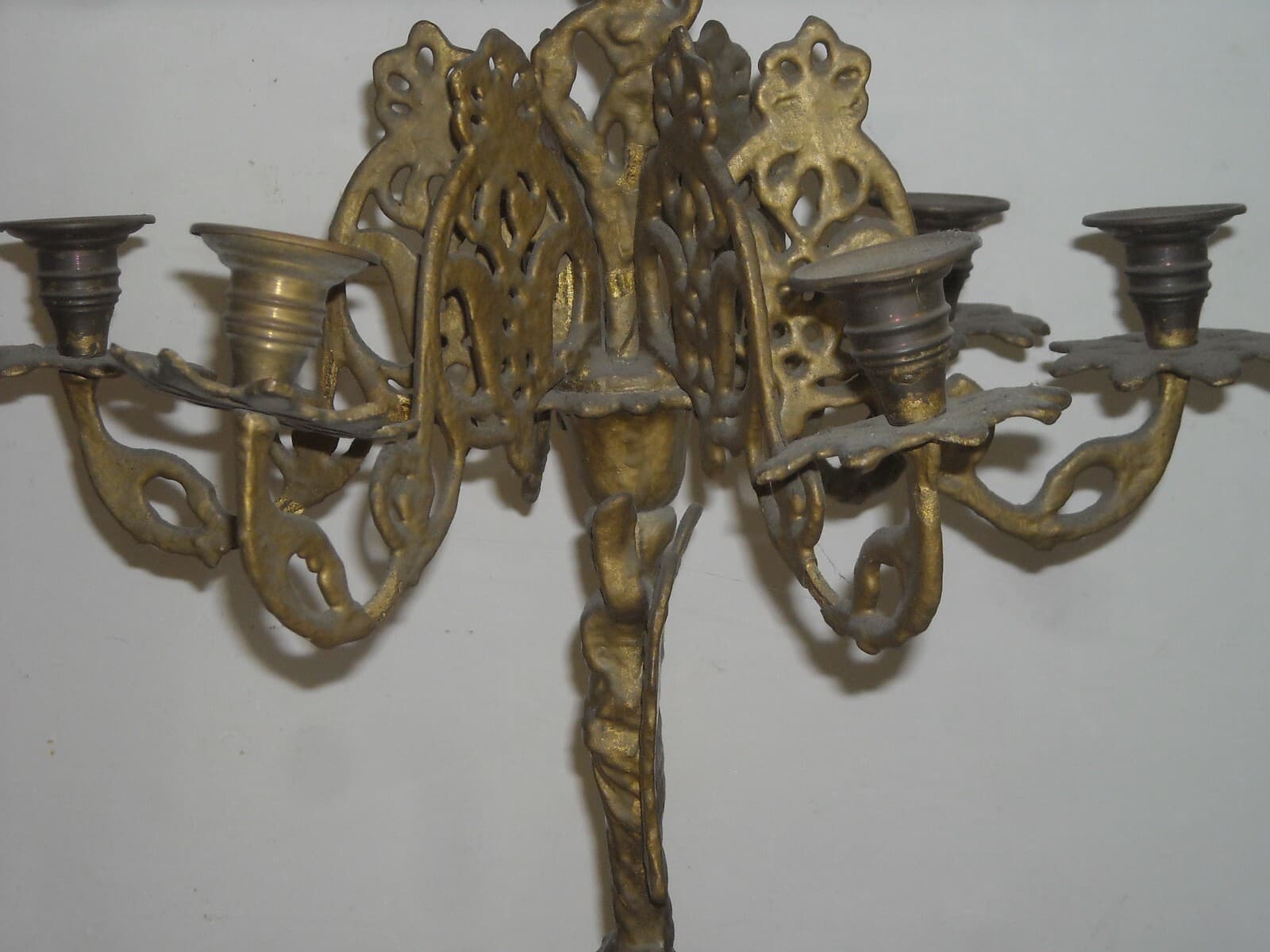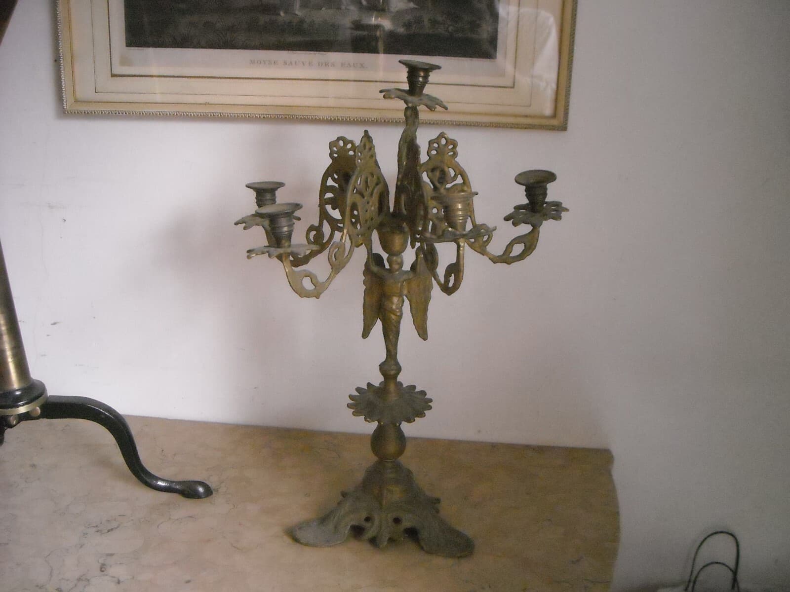 Antica Lampada Candelabro In Ottone Con Angelo, XIX Secolo