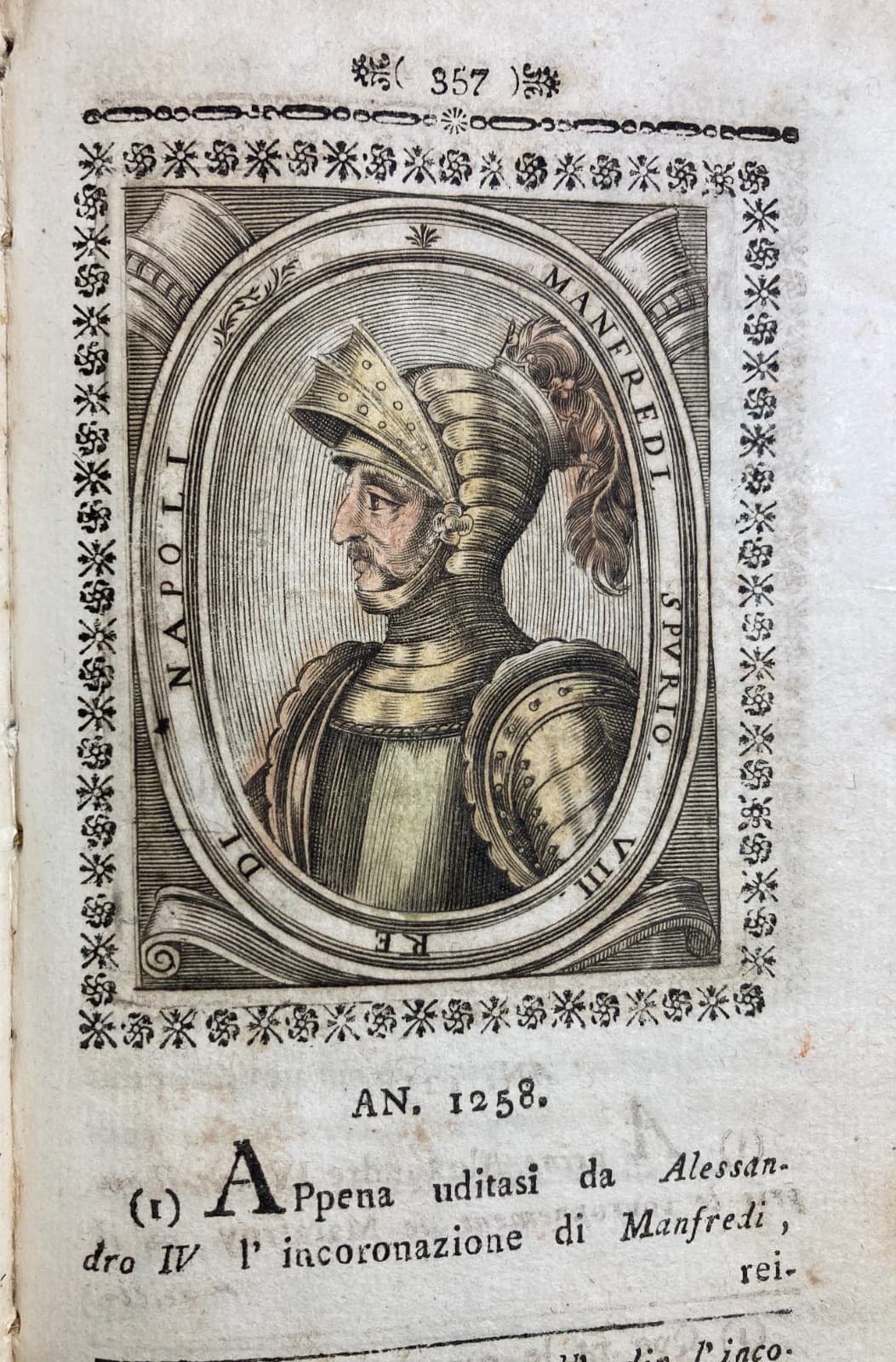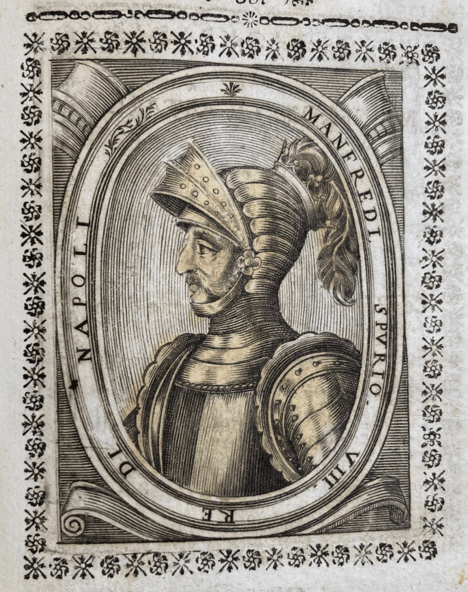Re Manfredi. Ritratto In Armatura. Incisione All'Acquaforte Del XVIII Secolo.