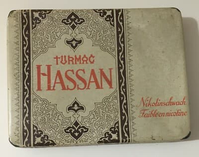 Scatola Di Latta Pubblicitaria Turmac Hassan Tabacco d'Oriente