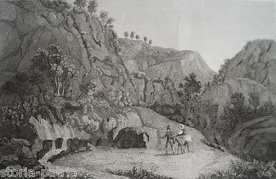 Sicilia, Fontebello: Veduta Con Sorgente d'Acqua E Figure Popolari. Incisione Antica