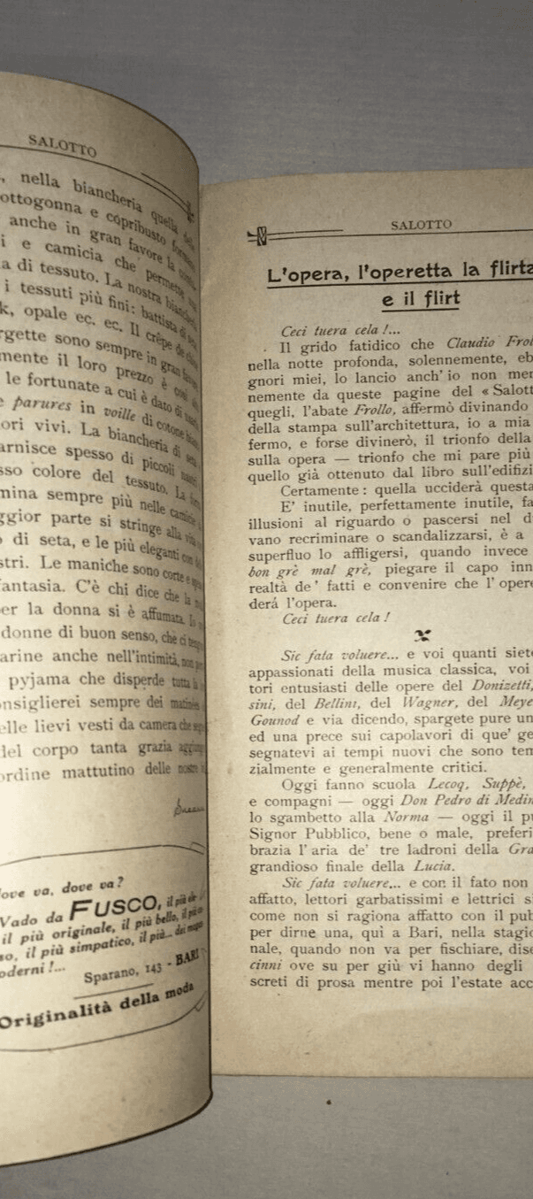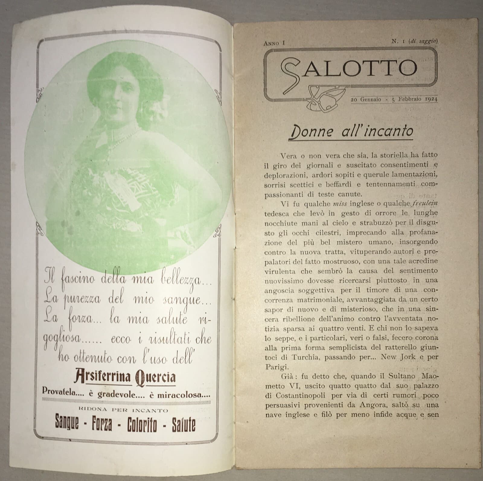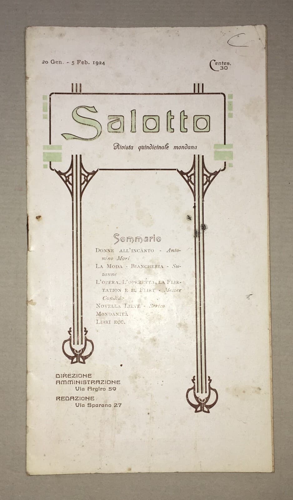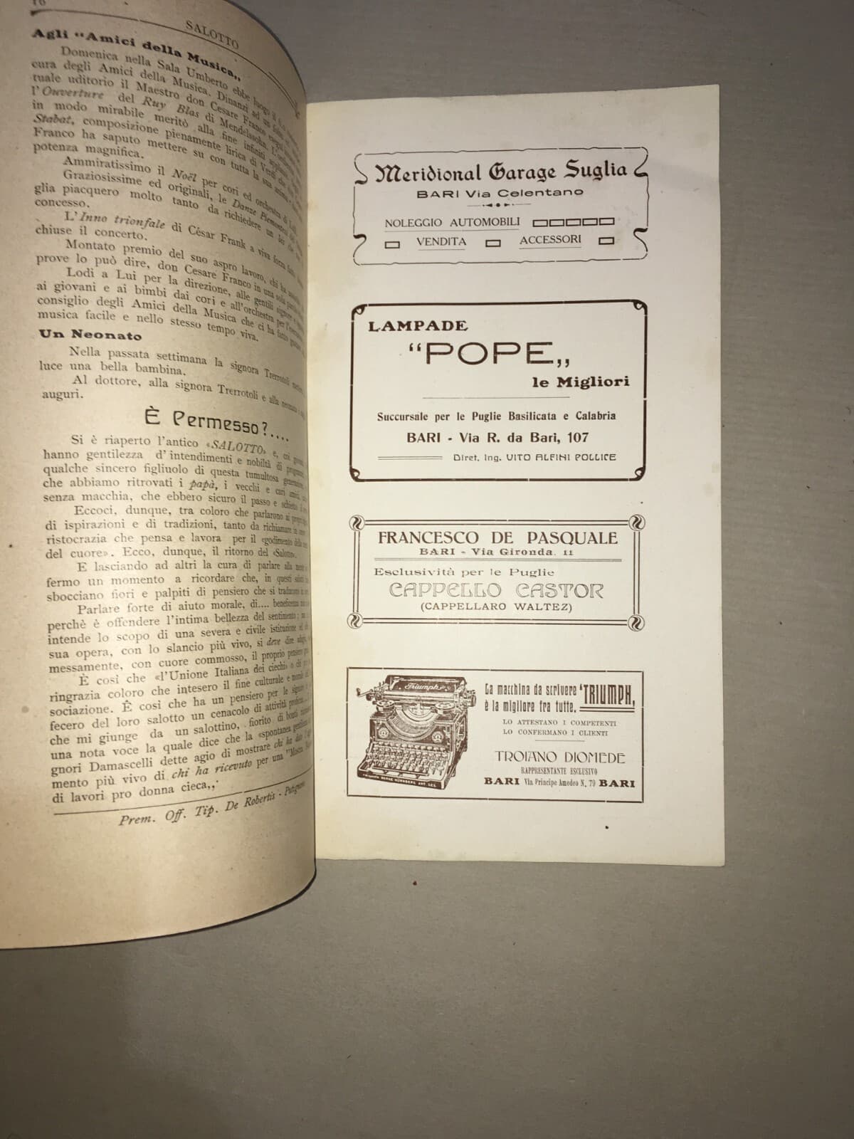 Puglia, Bari: Antica Rivista Salotto. Moda, Teatro, Mondanità. Lamacchia, Quercia, 1924