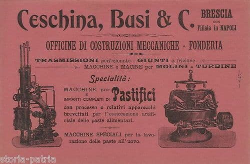 Pubblicità Antica Ceschina Busi Meccanica Pastifici Brescia 1907