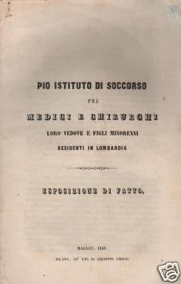 Pio Istituto Pei Medici E Chirurghi Loro Vedove E Figli Minorenni Milano 1858