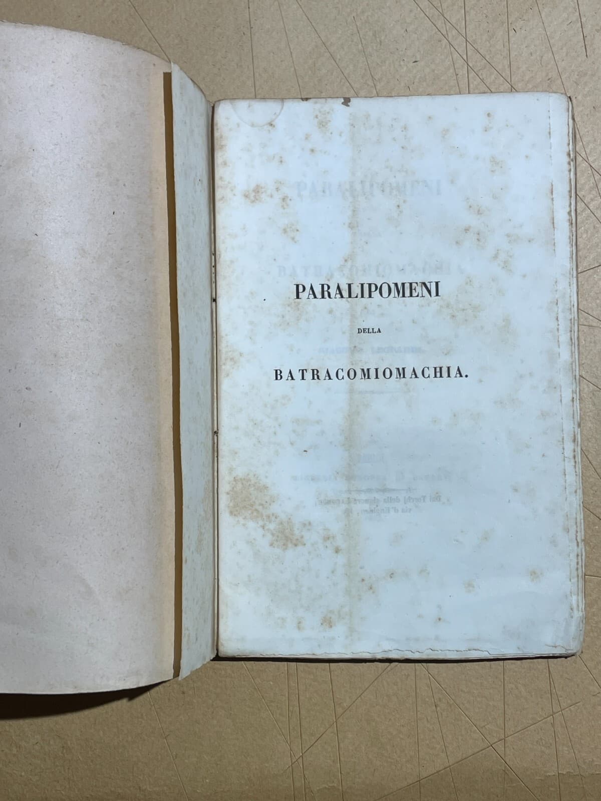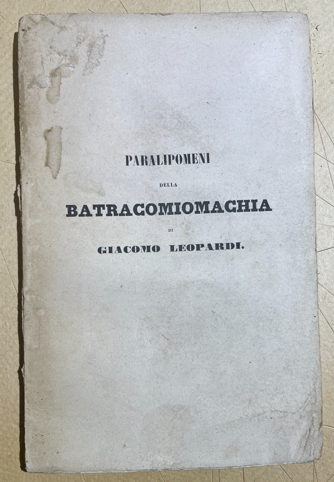 Giacomo Leopardi, Paralipomeni Della Batracomiomachia. Antica Edizione, 1842