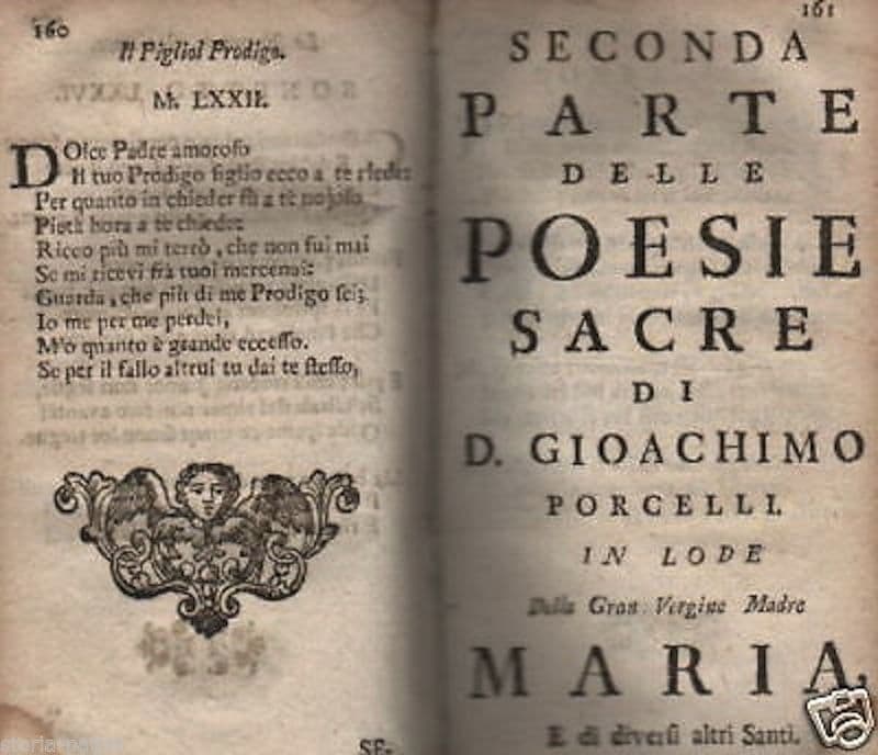 Poesie Sacre E Varie Di Gioachimo Porcelli, Napoli, 1720