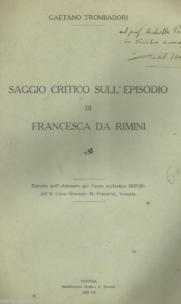 Gaetano Trombadori, Saggio Critico Sull'Episodio Di Francesca Da Rimini (1929)
