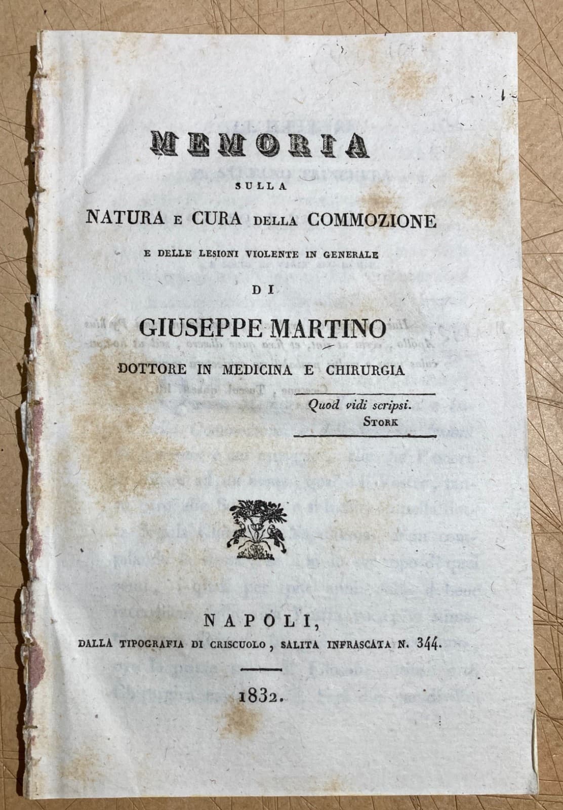 Medicina, Chirurgia E Lesioni Violente: Isernia, San Vincenzo Al Volturno, Giuseppe Martino, 1832