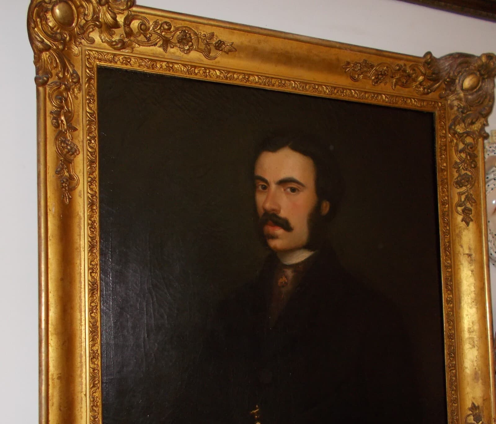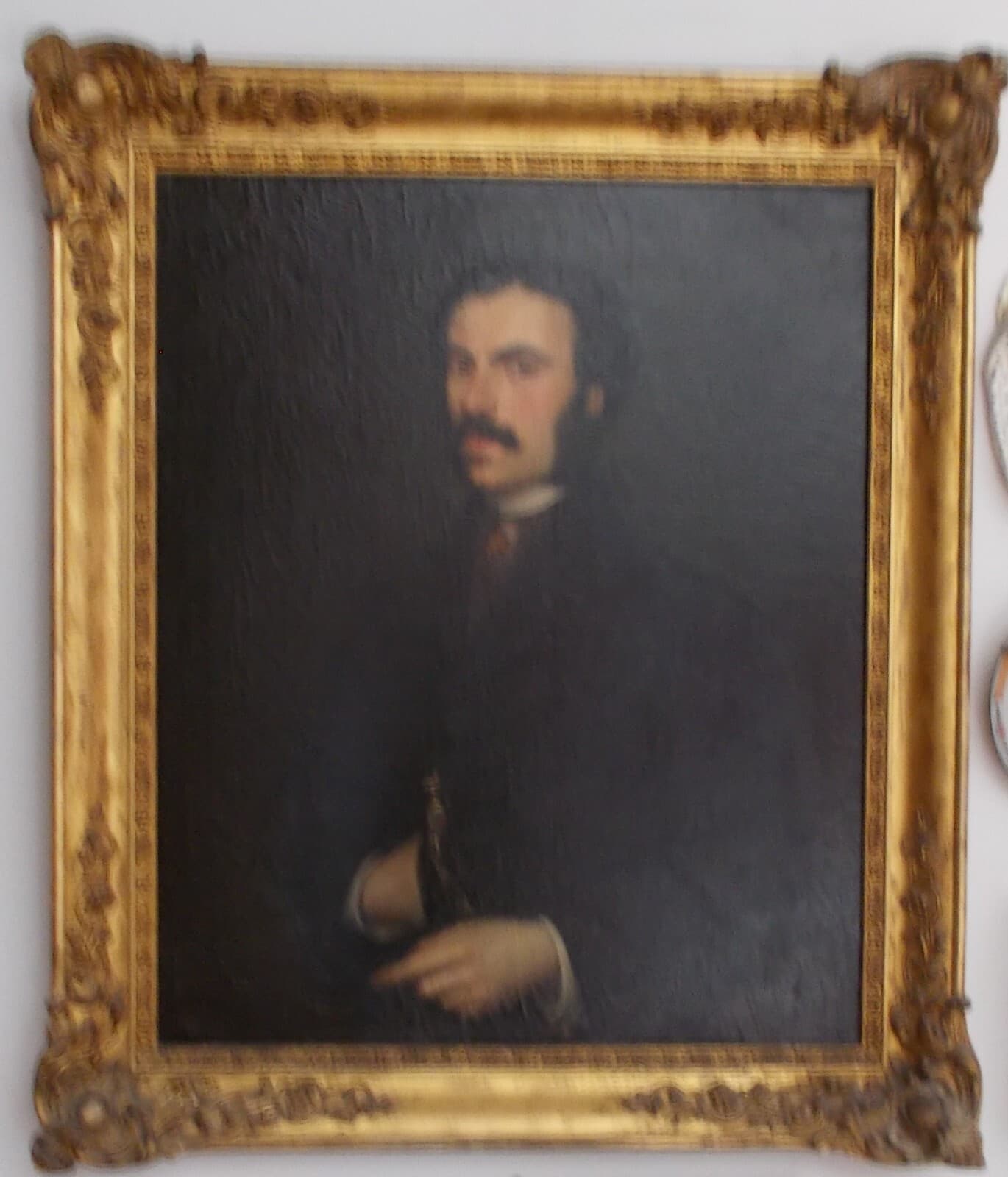Arte: Pittura, Antico Ritratto Maschile. Uomo Con Baffi, Opera Firmata