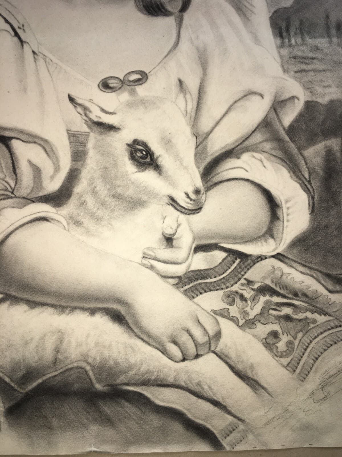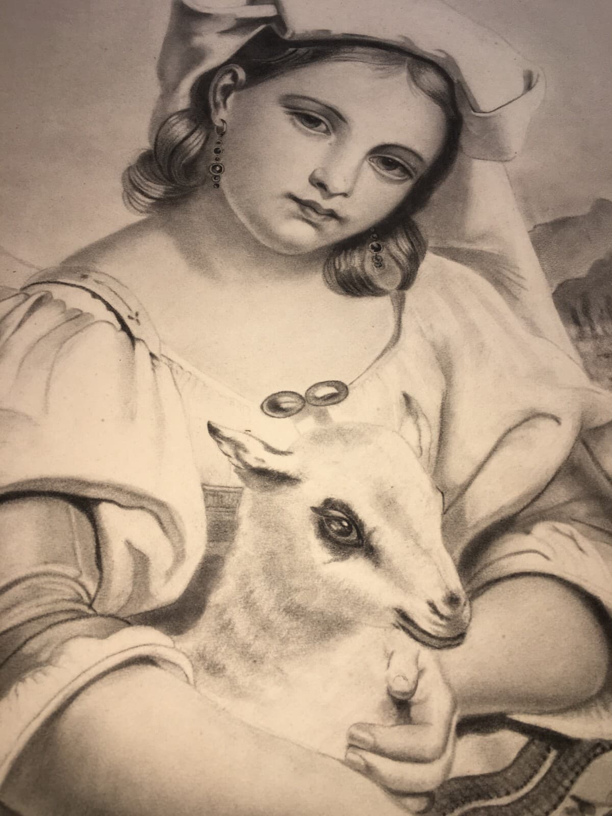 Pastorella Con Agnello, Scena Bucolica, Disegno Tecnica Mista, Primo '900
