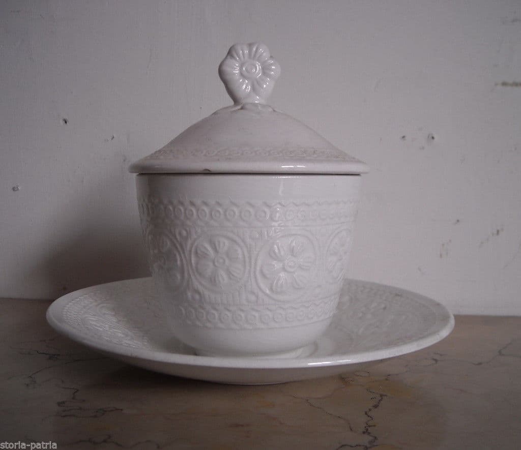 Antica Salsiera In Ceramica Laveno Liberty Con Cucchiaio, Circa 1900