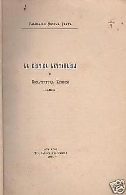 Critica Letteraria: Bonaventura Zumbini. Edizione Originale, Avellino, 1894