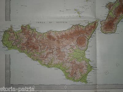 Grande Antica Mappa Geografica: Calabria, Sicilia, Lampedusa, Ustica, Lipari E Santa Maria Di Leuca