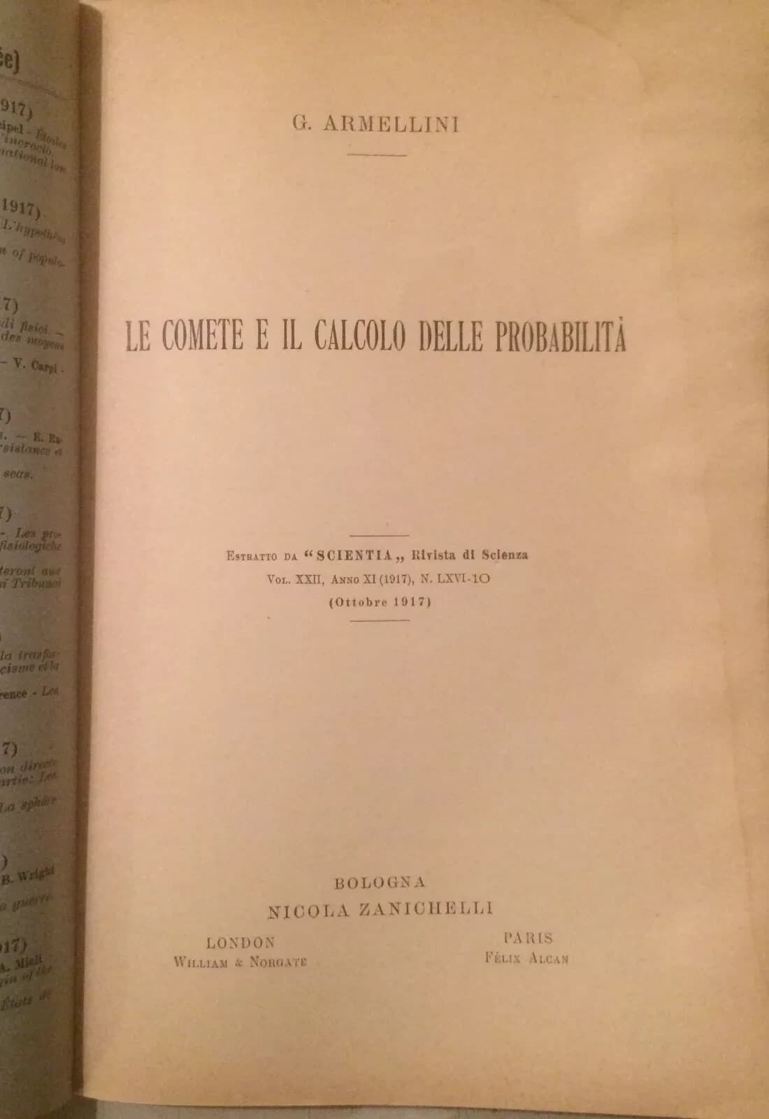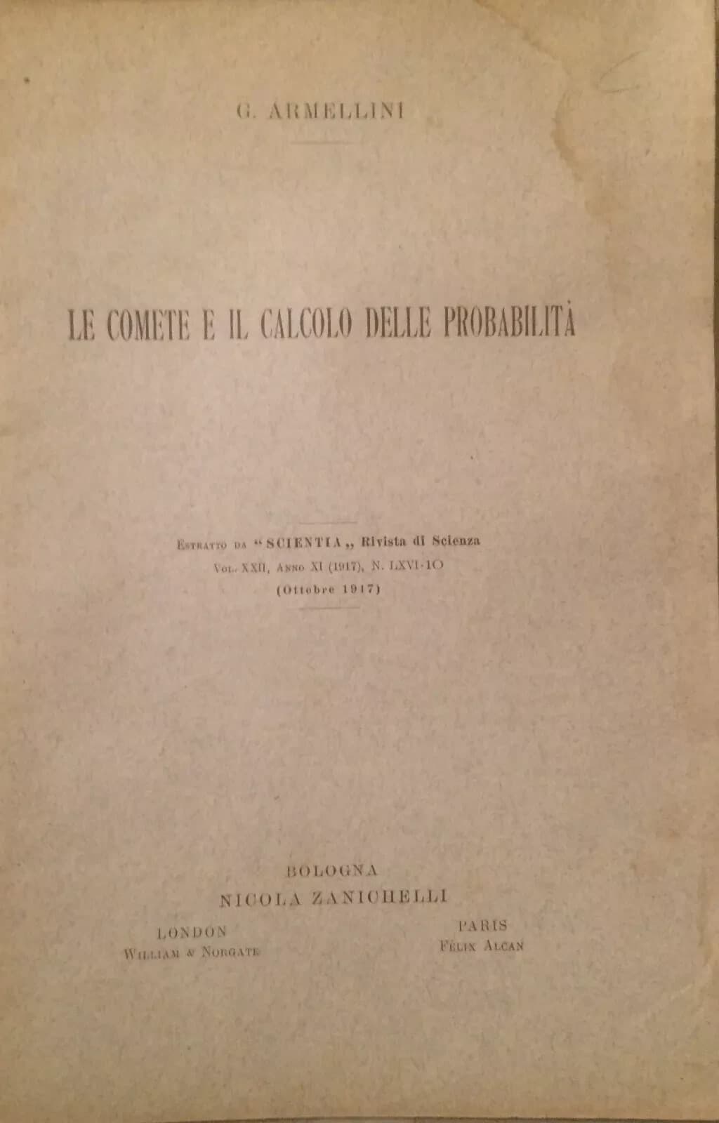 Astronomia, Fisica, Comete E Calcolo Delle Probabilità Armellini, Antico Estratto