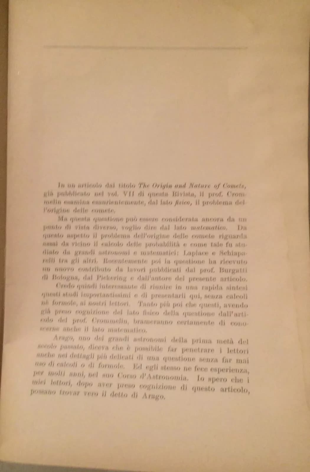 Astronomia, Fisica, Matematica: L'Origine Delle Comete Armellini