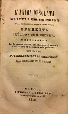 L'Anima Desolata Confortata A Patir Cristianamente Gennaro Maria Sarnelli (Napoli, 1852)
