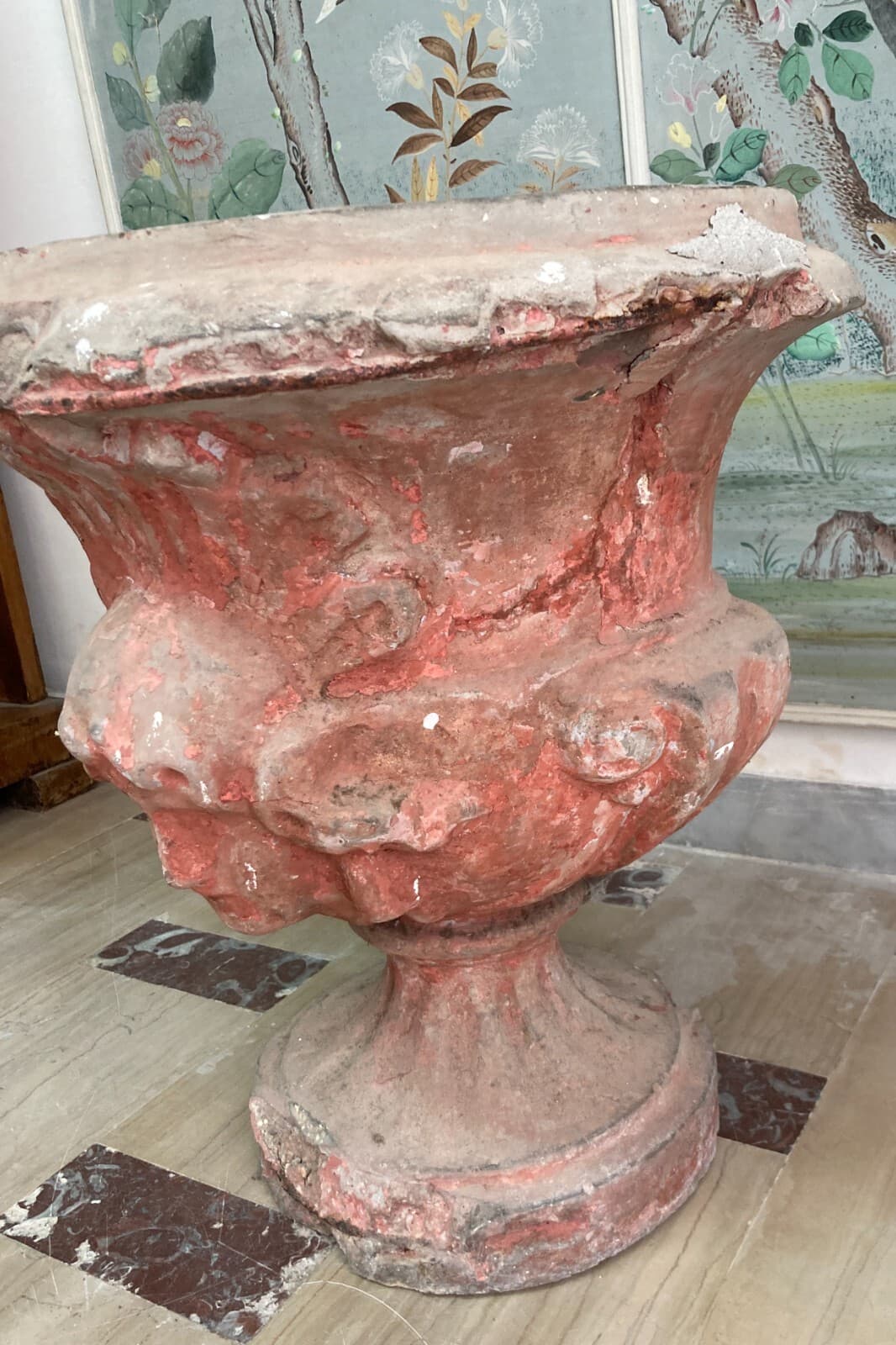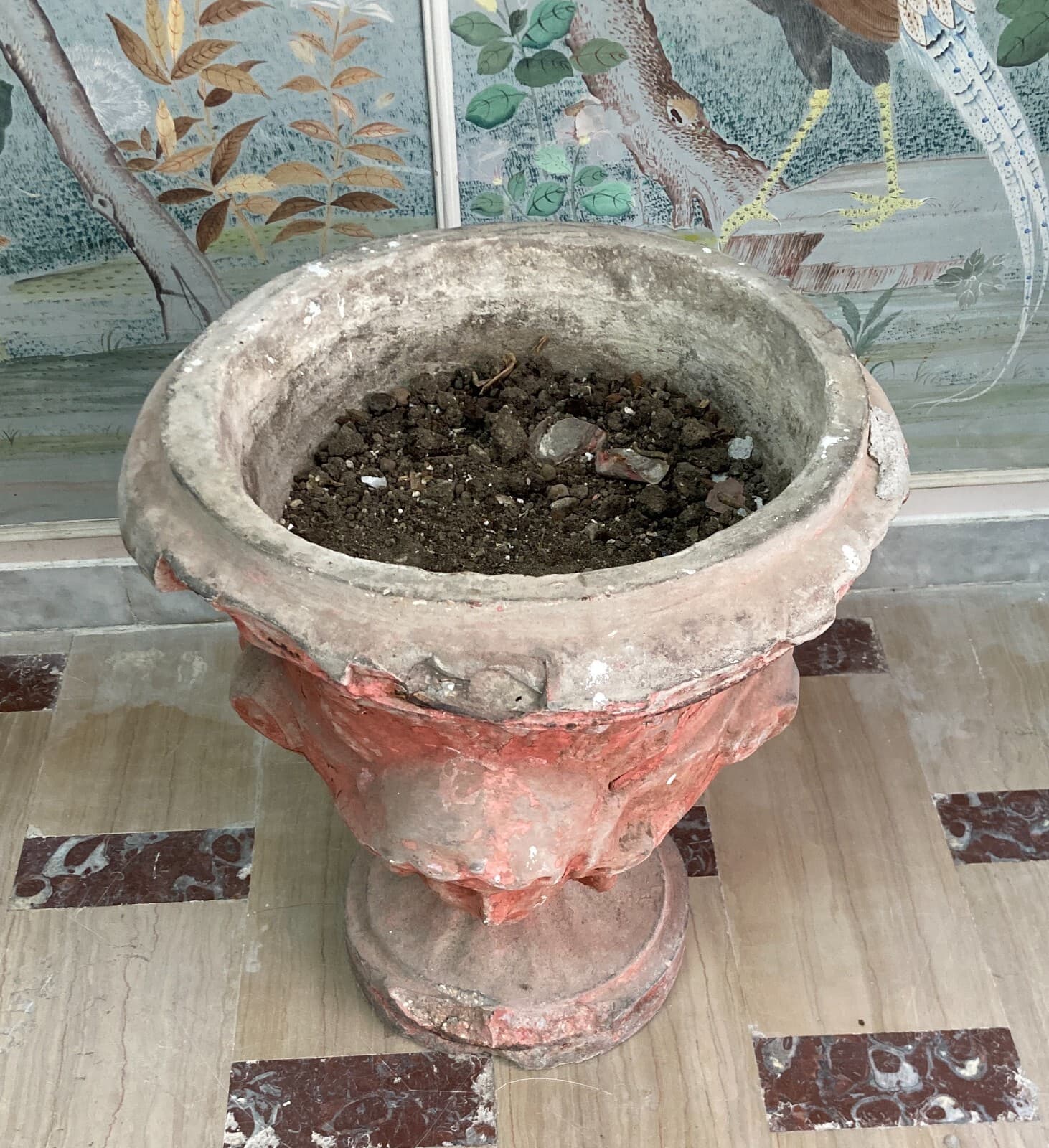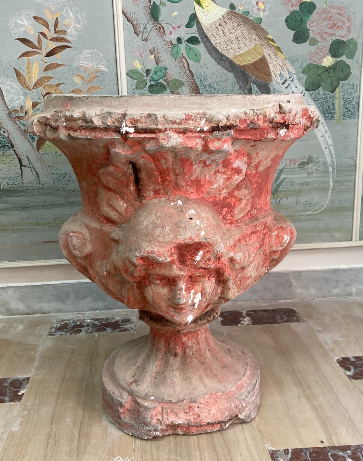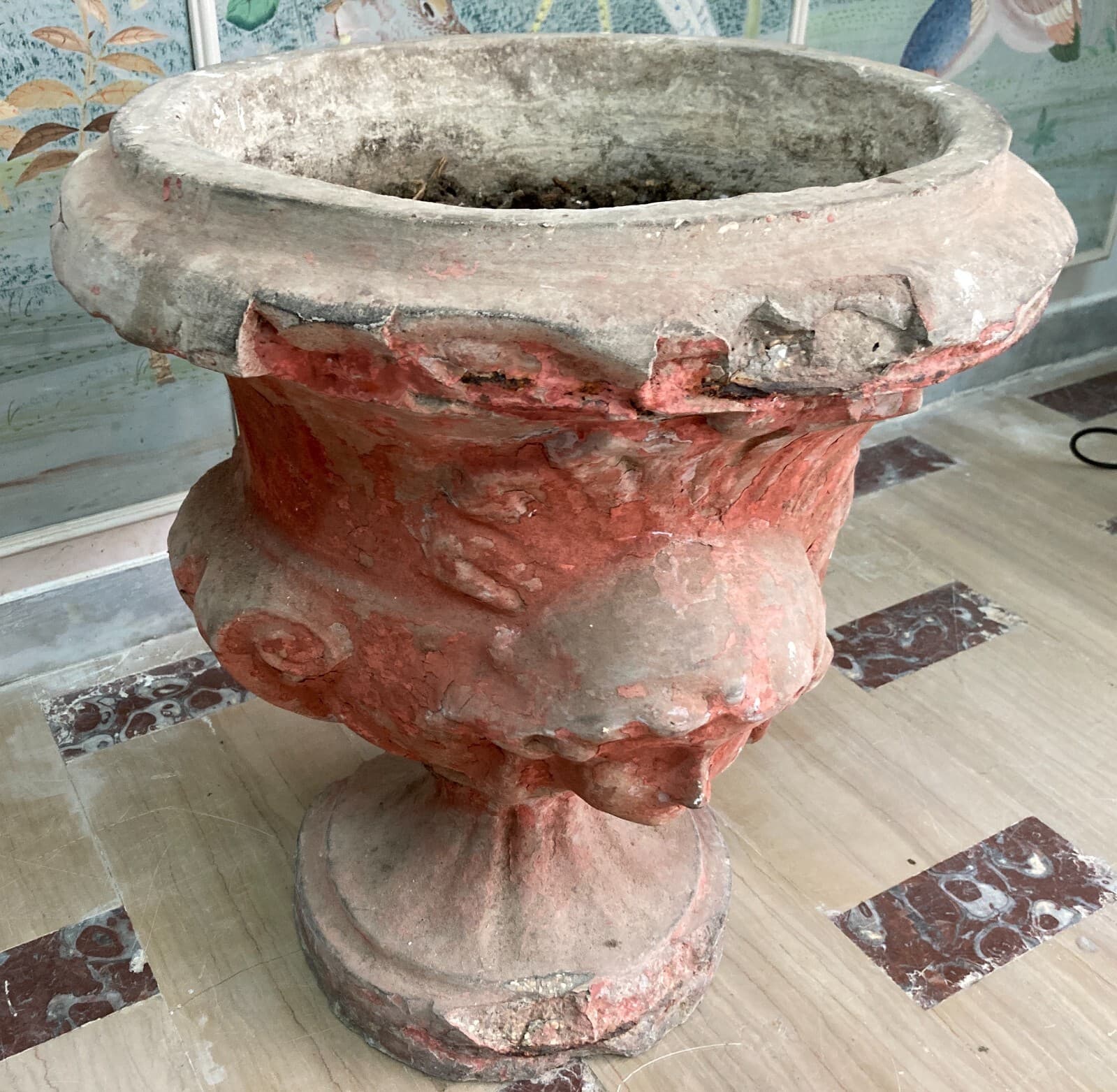 Vaso Decorativo Figurato Per Piante In Cemento, Anni '30