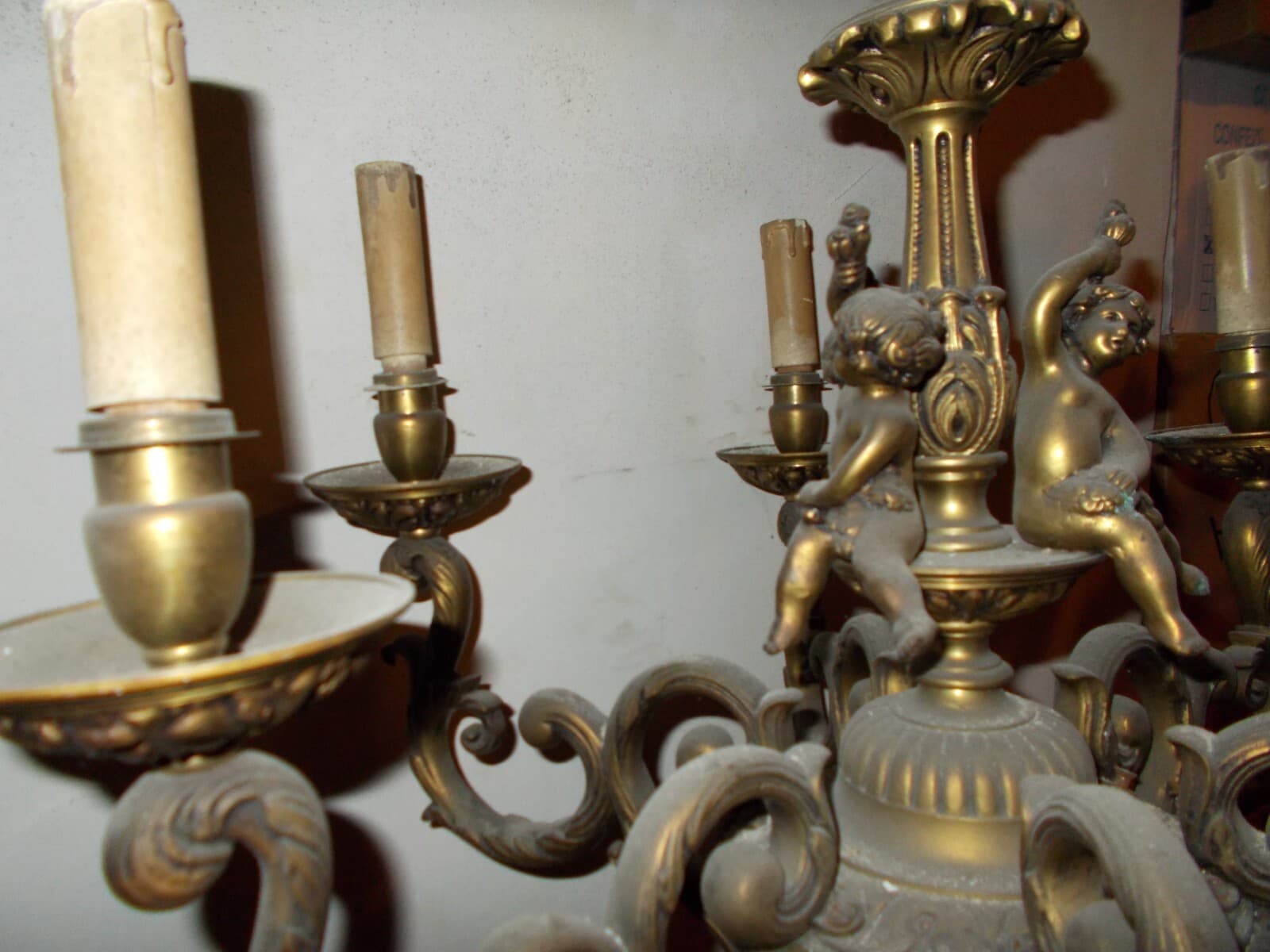 Decorativo Lampadario d'Epoca Con Sculture Di Puttini
