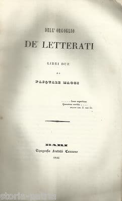 Pasquale Maggi: Dell'Orgoglio De' Letterati. Bio Bibliografia E Storia Delle Invenzioni, Bari, 1846