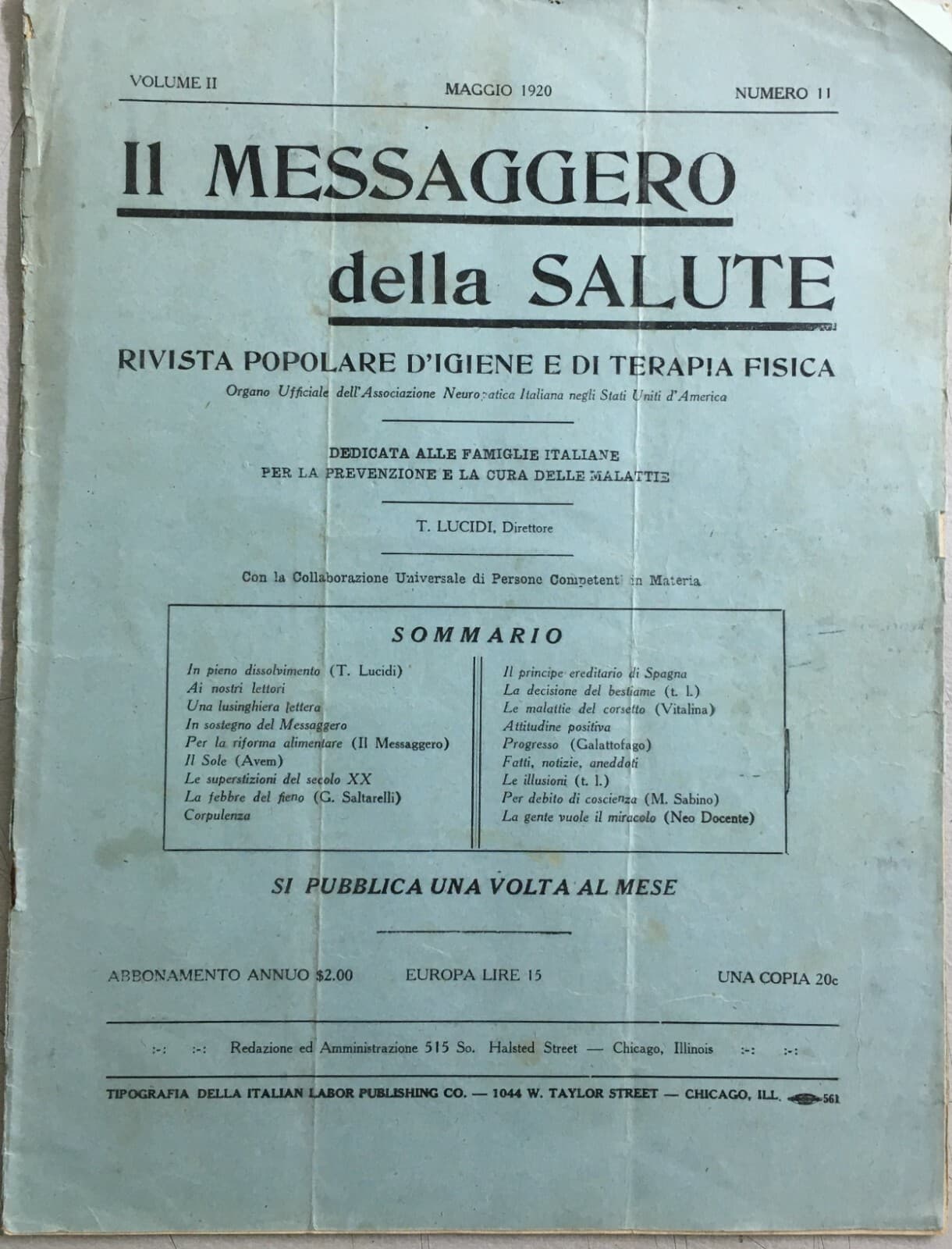 Medicina Alternativa, Osteopatia, Naturopatia, Chiropratica Ed Emigrazione A Chicago (1920)