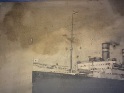 Lloyd Sabaudo, Nave Conte Verde. Grande Veduta Pubblicitaria Su Lamiera Sbalzata