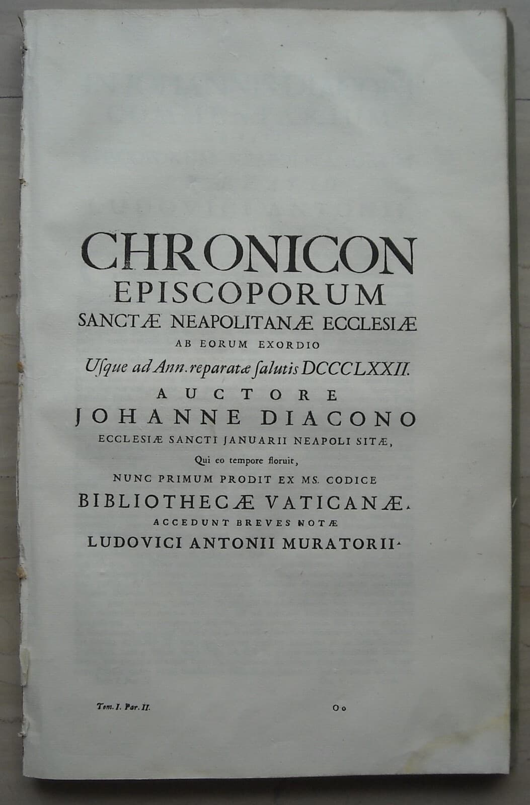 Napoli: Cronaca Dei Vescovi Napoletani Di Giovanni Diacono Edizione Muratori (1723)