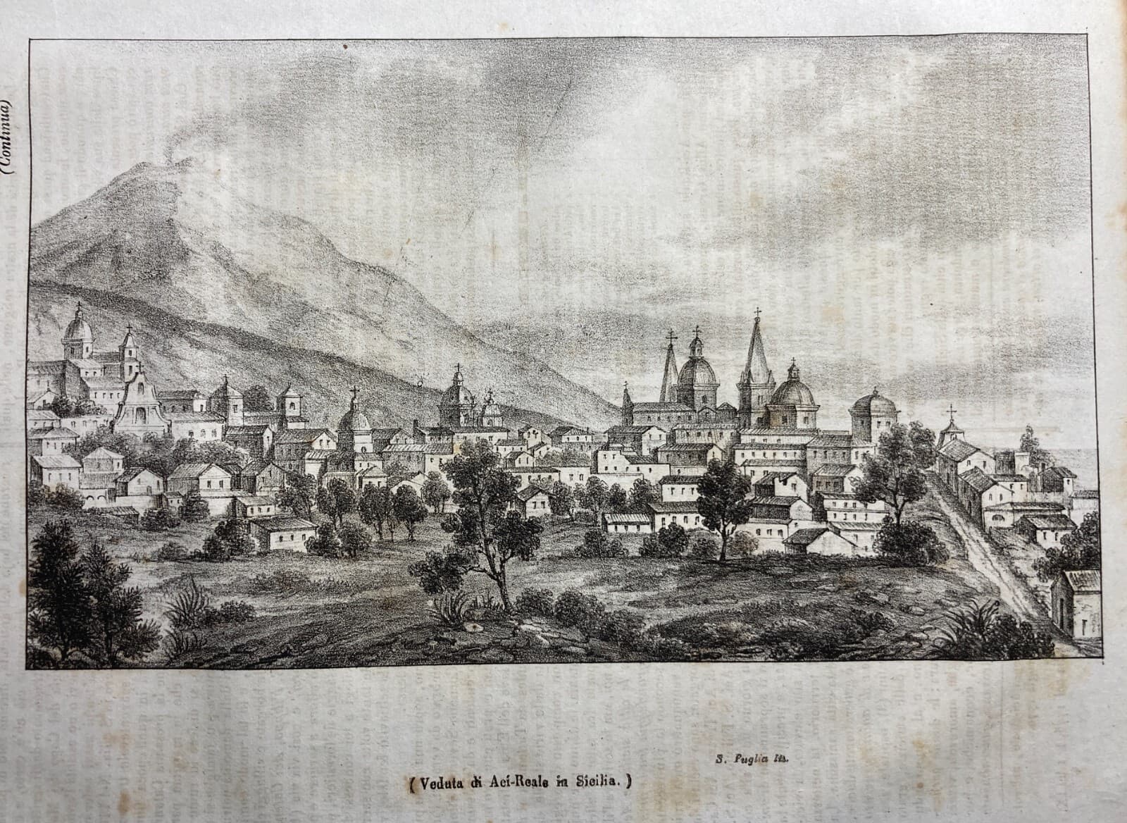 Sicilia, Catania, Acireale: Antica Veduta Panoramica, Palazzi E Chiese, Etna, Lito '800