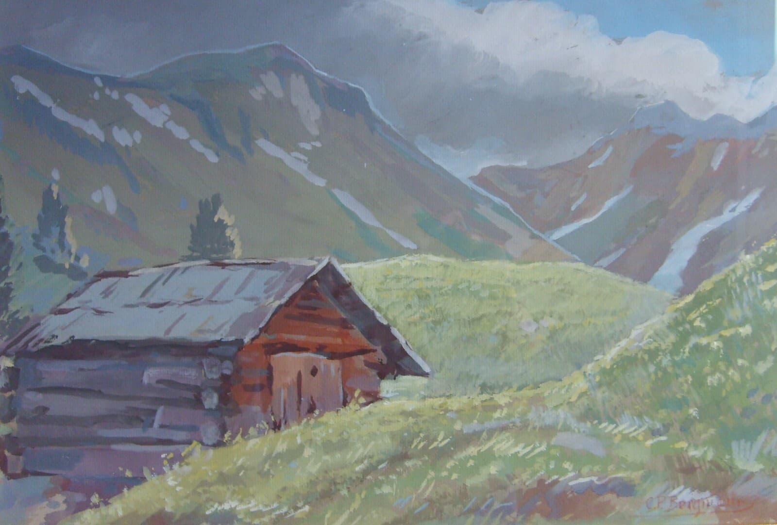 Paesaggio Montano Con Baita, Opera Firmata Di Conrad Peter Bergmann