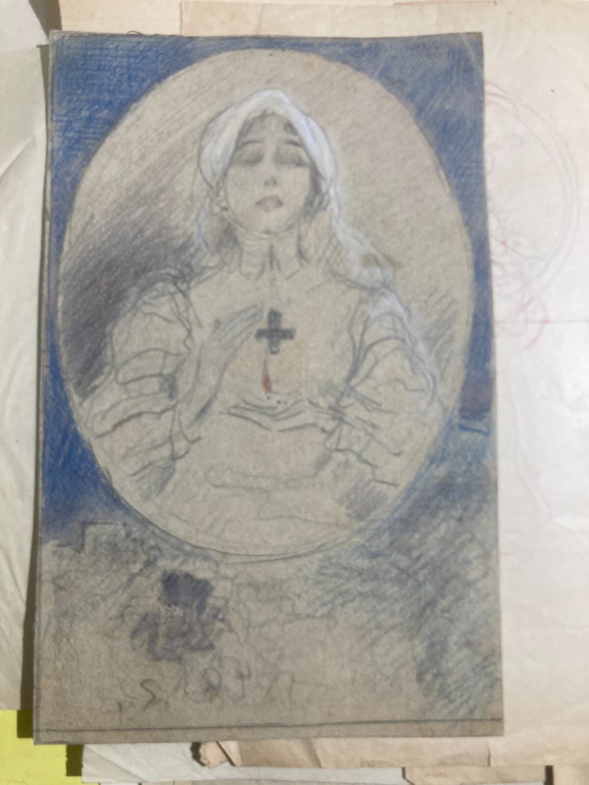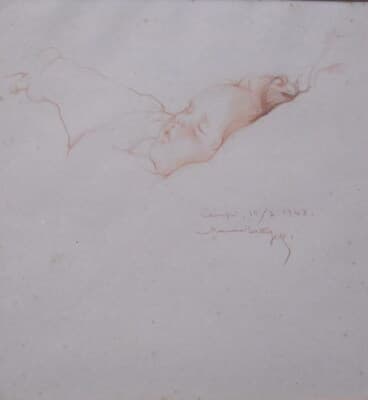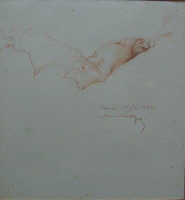 Marina Battigelli, Ritratto Di Bimbo Addormentato. Disegno Originale A Sanguigna, 1943