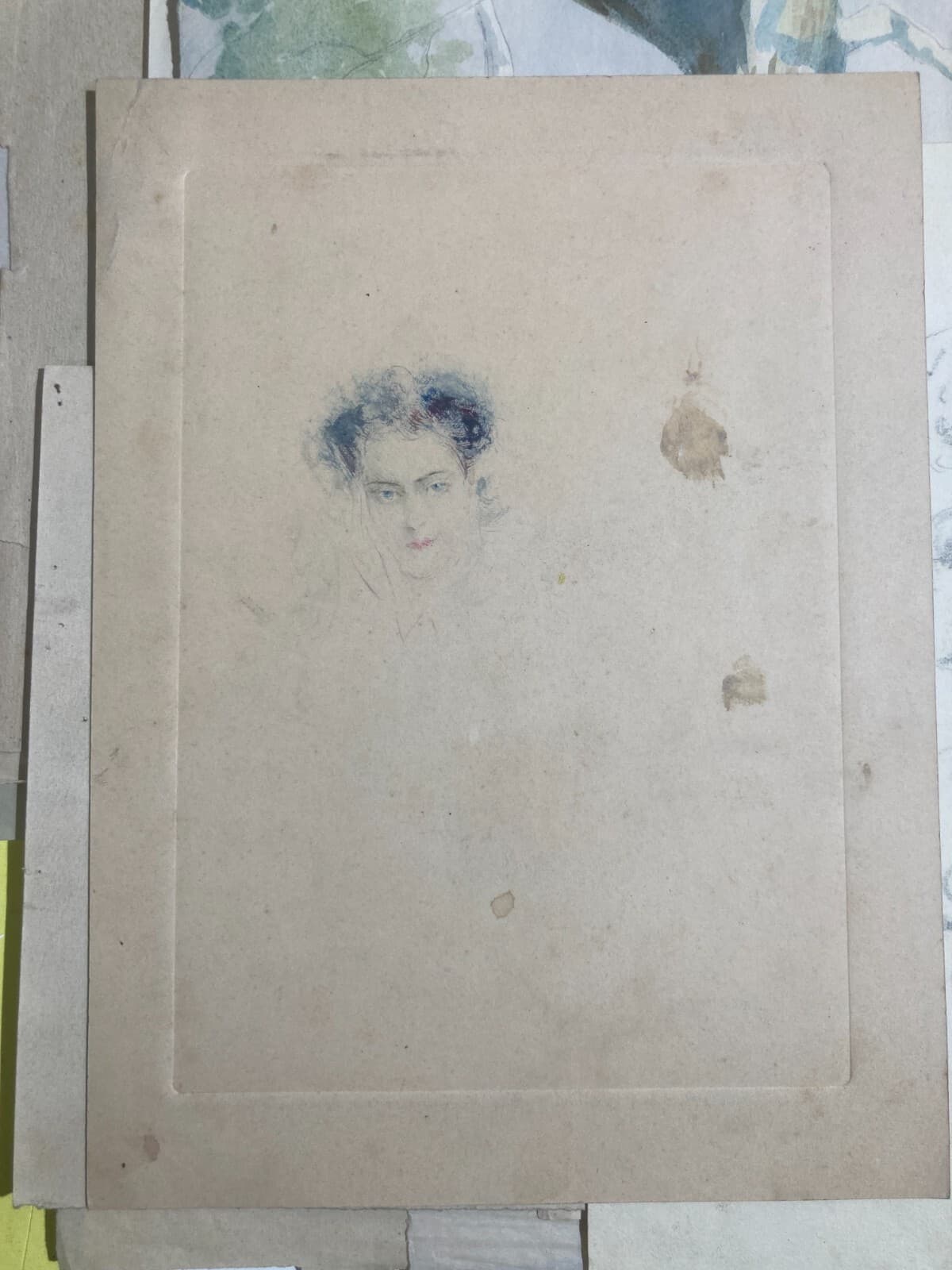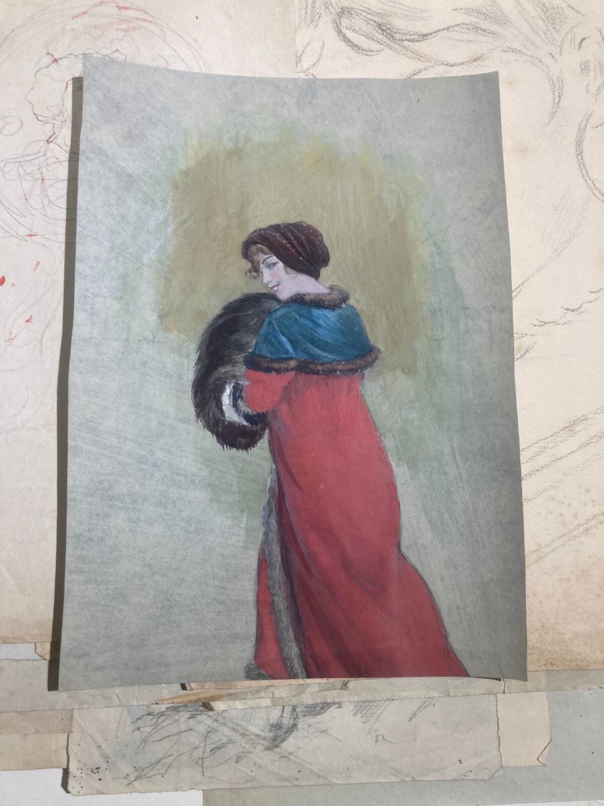 Ninon Vaccarella: Dipinto Ad Acquerello Di Signora In Stile Liberty Con Dedica