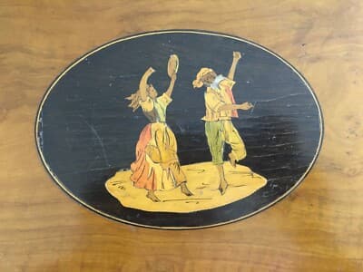 Arte Popolare: Antica Scatola Intarsiata Con Scena Di Tarantella E Tamburello