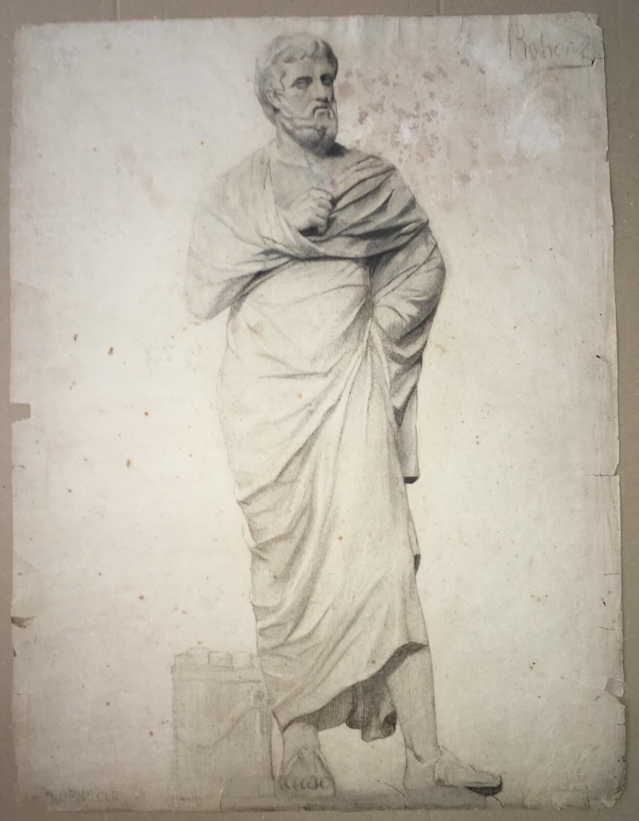 Ritratto Di Sofocle Antico Grande Disegno A Tecnica Mista