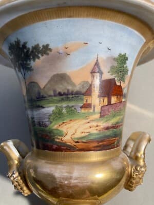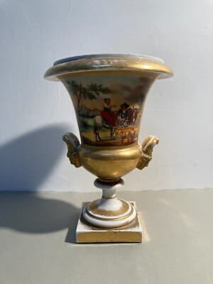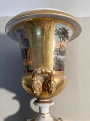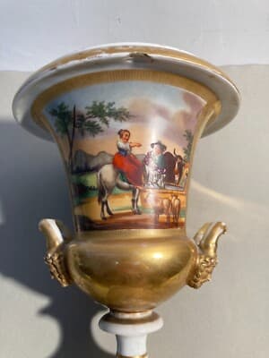 Antico Pregevole Soprammobile: Vaso Con Artistici Dipinti, Neoclassico Dorato, '800