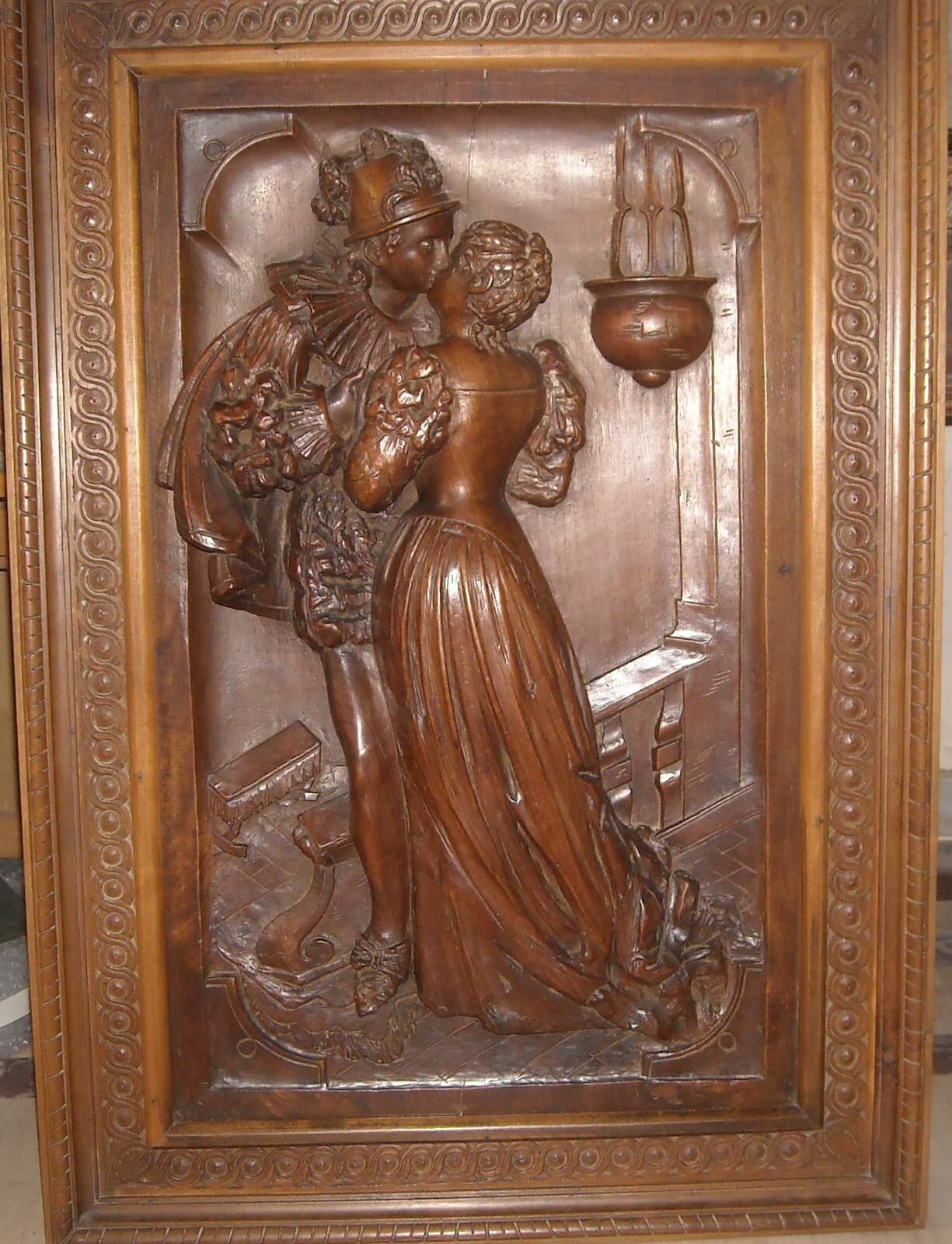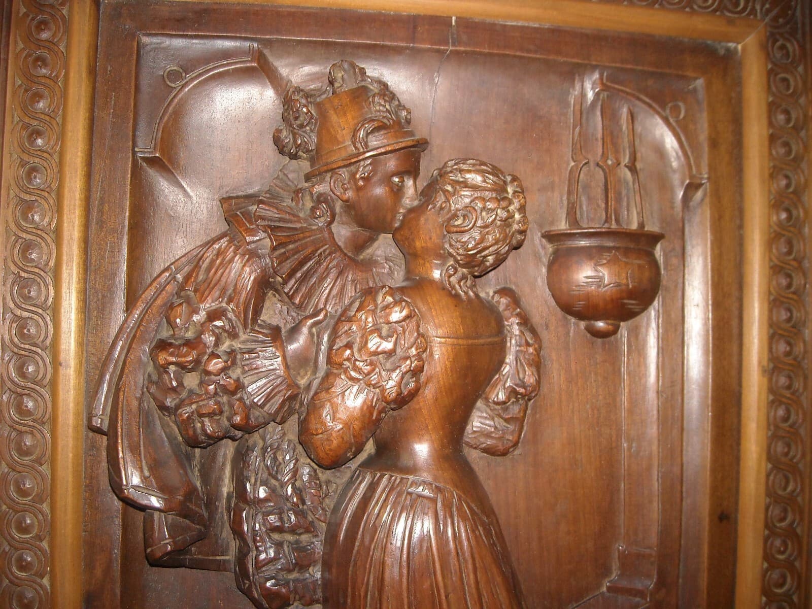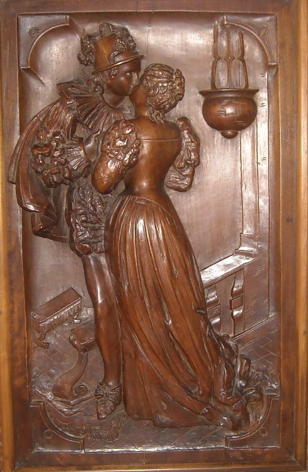 Arte, Artigianato, Ebanisteria: Antica Scultura Lignea, Scena Galante Decorativa