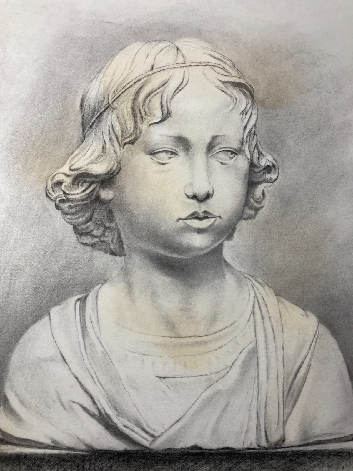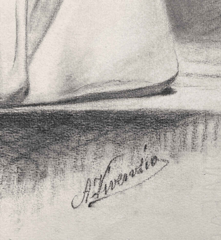 Arte, Scultura, Ritratto Di Giovinetto, Antico Disegno A Carboncino, Firma Vivenzio