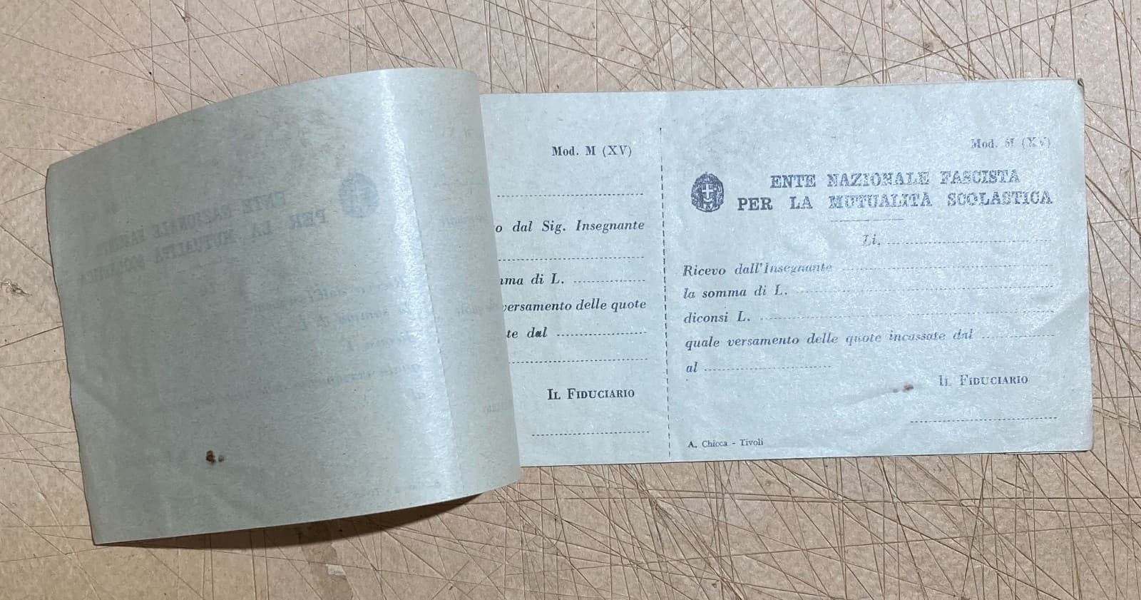 Scuola, Fascismo, Mutualità Scolastica: Ricevute Quote Insegnanti (Tivoli)