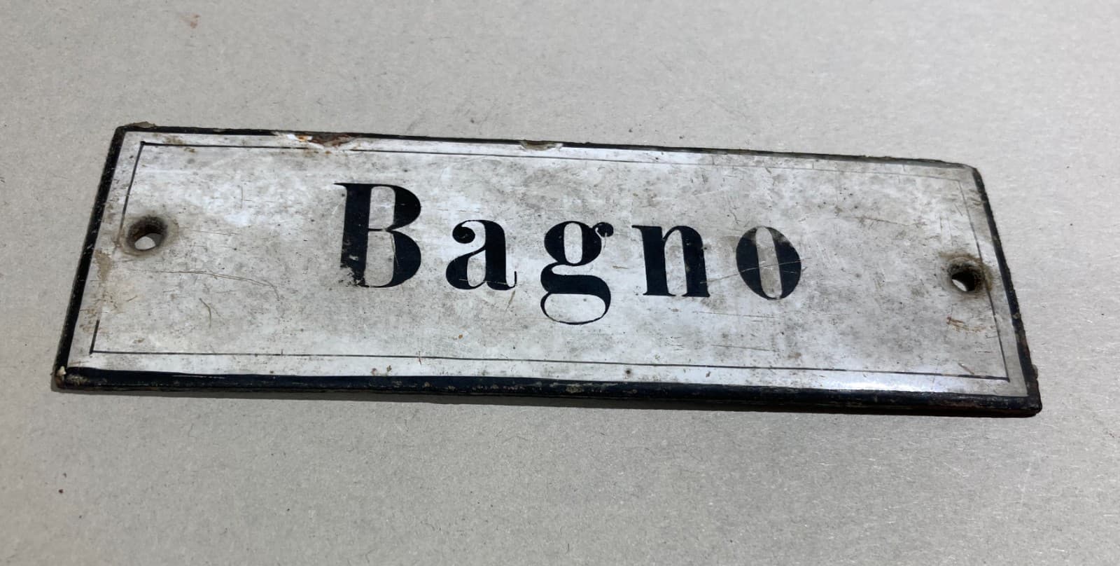 Piccola Targa d'Epoca In Metallo Porcellanato Per Bagno O Toilette