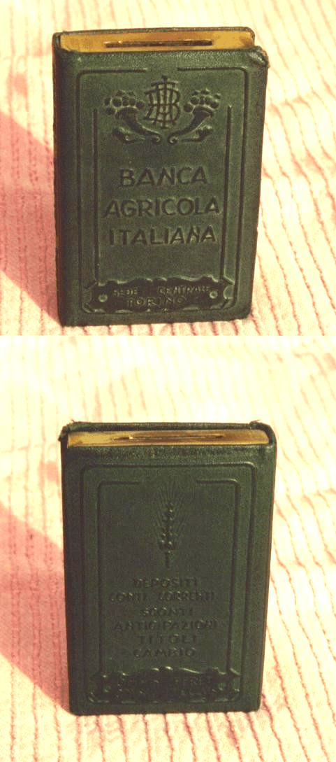 Torino, Banca Agricola Italiana: Antico Salvadanaio Pubblicitario A Forma Di Libro