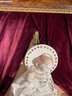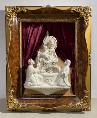Arte Devozionale: Madonna Del Rosario Di Pompei. Scultura In Ceramica Firmata In Cornice.