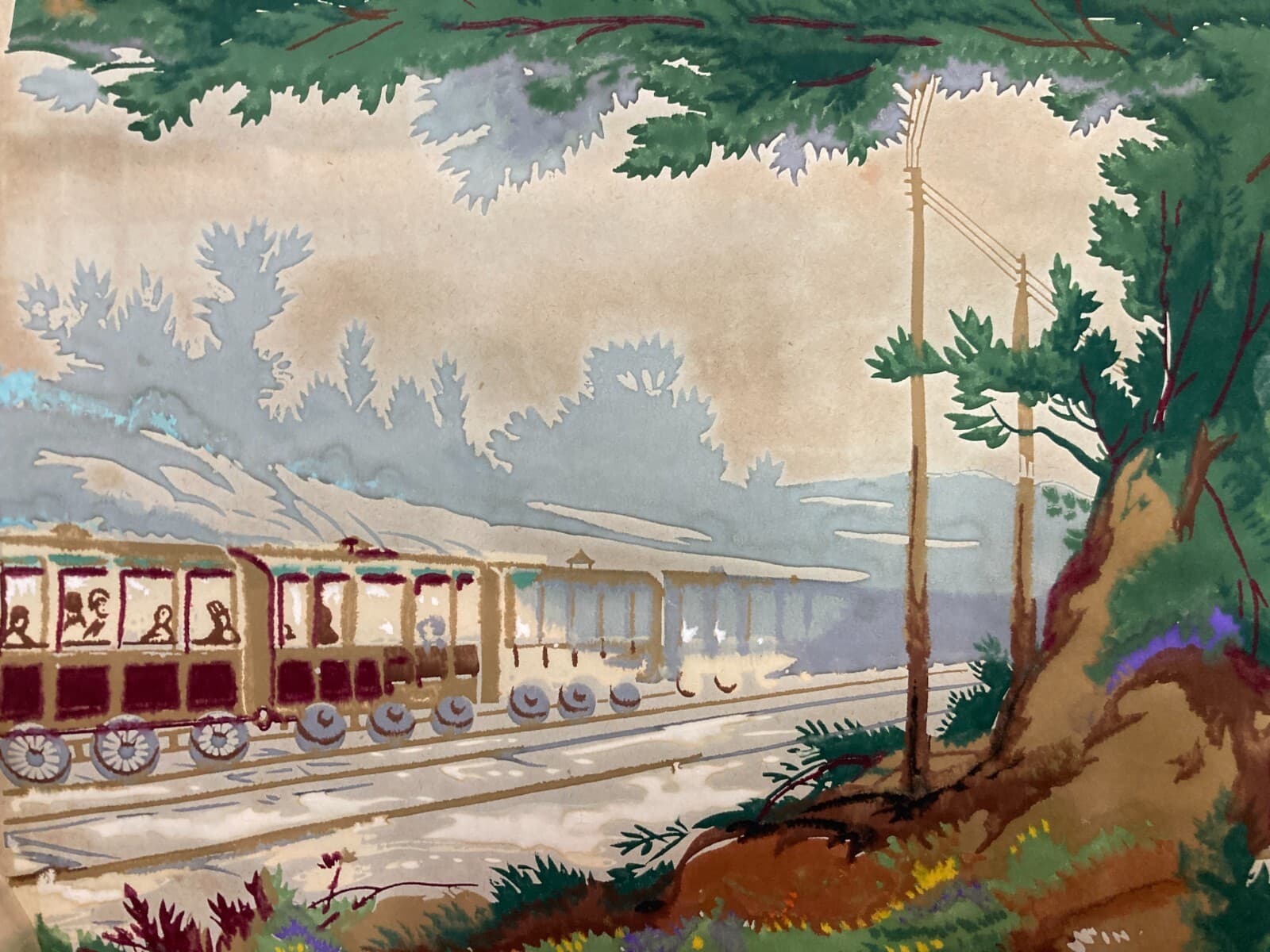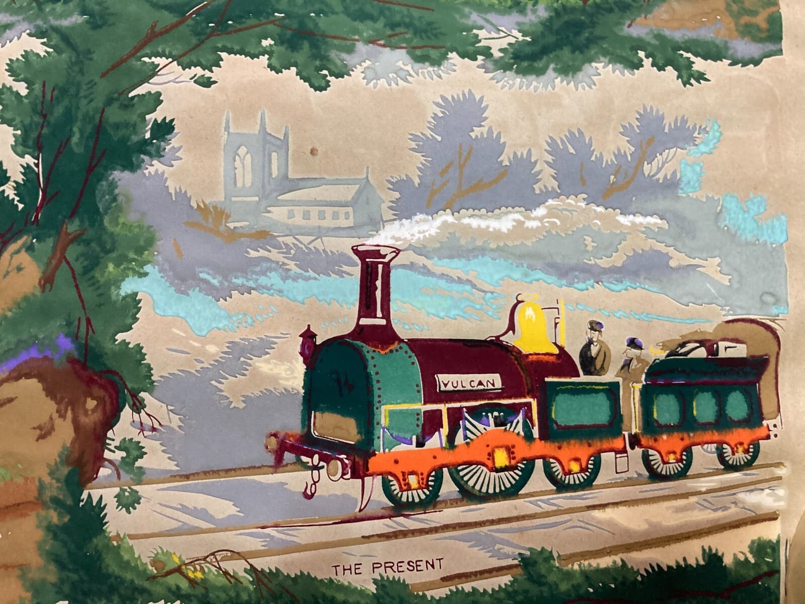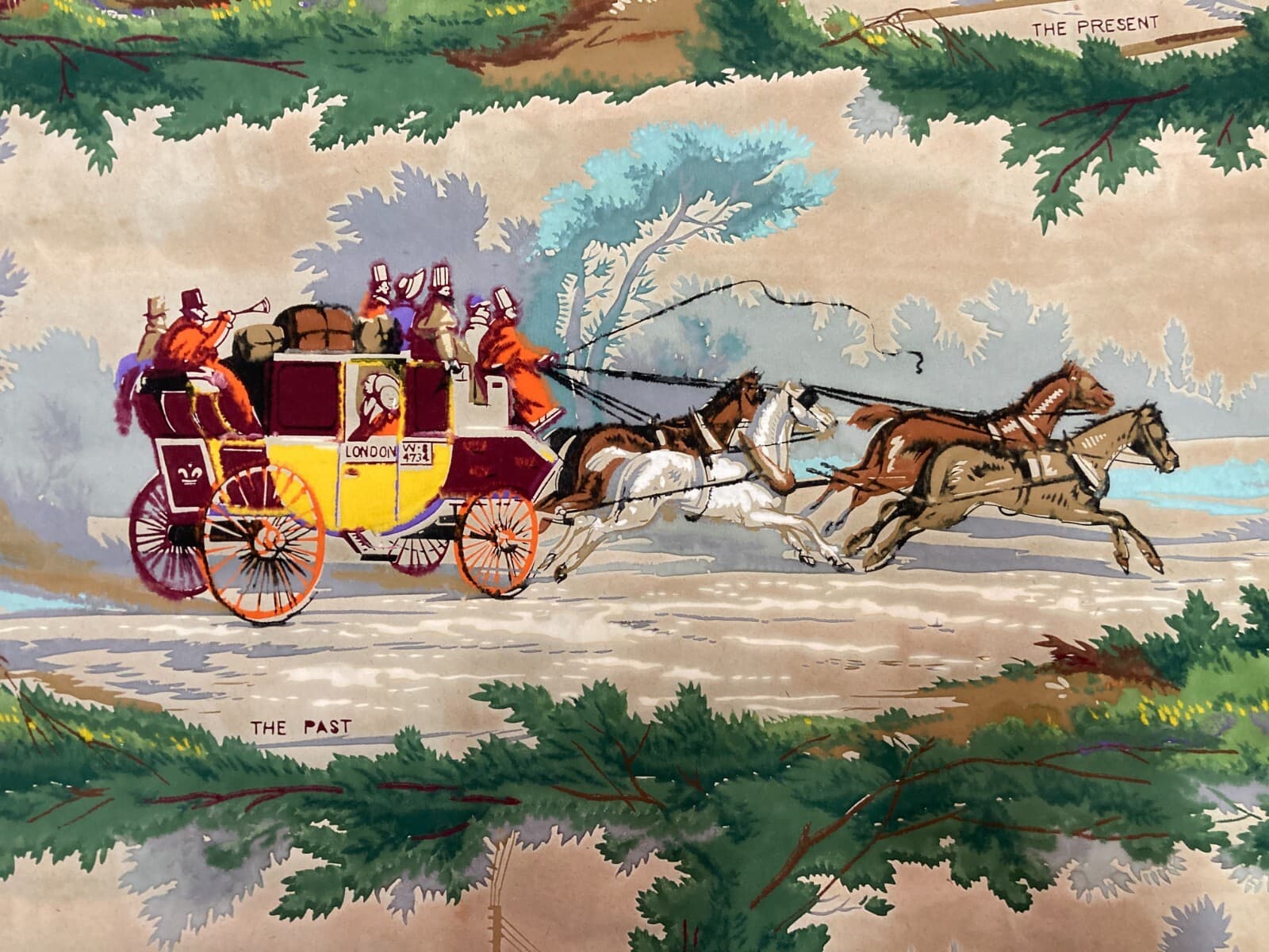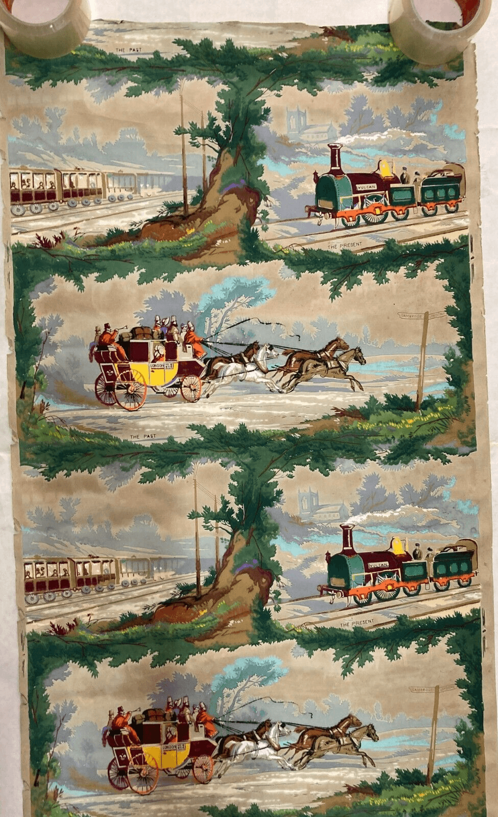 Arte E Decorazione: Trasporti E Locomozione. Frammento Di Carta Da Parati Pochoir